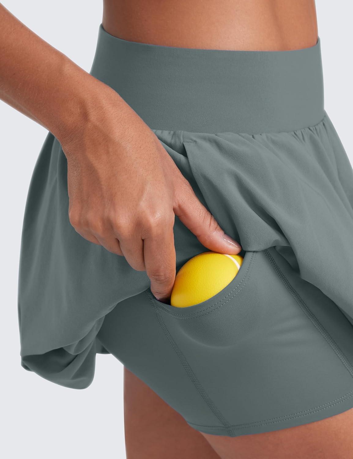 CRZ YOGA High Waisted Bubble Tennis Skirts for Women - Mini Casual Ruffled Hem Lined Balloon Skort with Pockets(Grey Sage)
