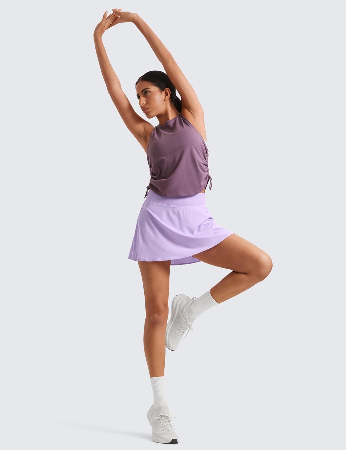 CRZ YOGA High Waisted Flowy Tennis Skirts for Women – Mini Lined Pickleball Casual A Line Skorts with Pockets(Lilac)