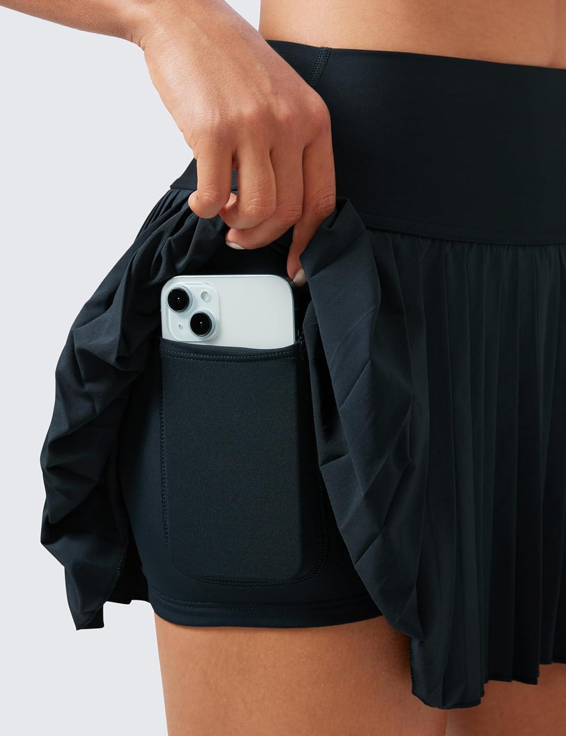 CRZ YOGA High Waisted Pleated Tennis Skirts for Women - Mini Lined Casual Tummy Control Skort with Pockets(True Navy)