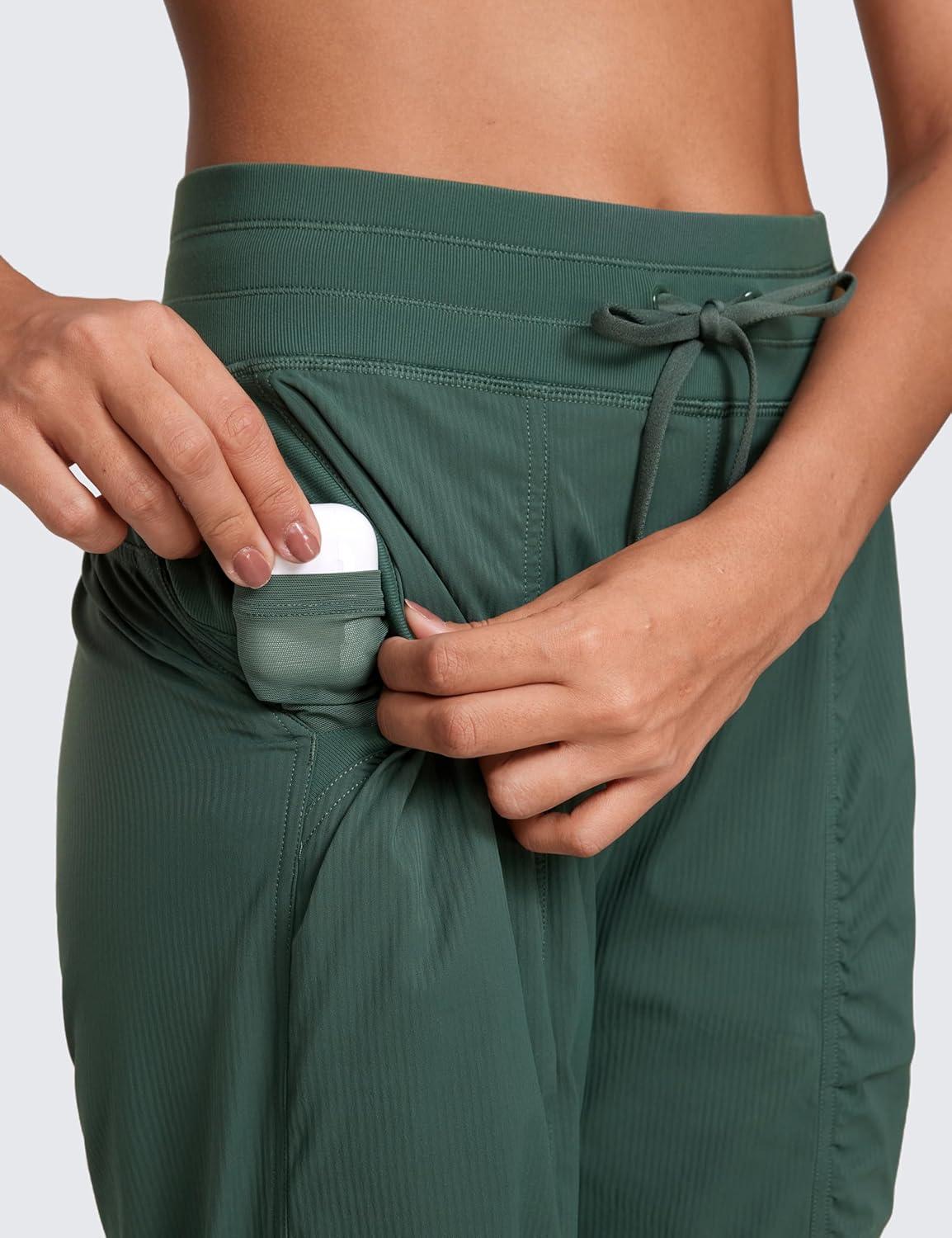 CRZ YOGA Lightweight Workout Joggers for Women 26"/28.5"/30.5" - Outdoor Running Casual Pants with Pockets(Dark Forest Green)