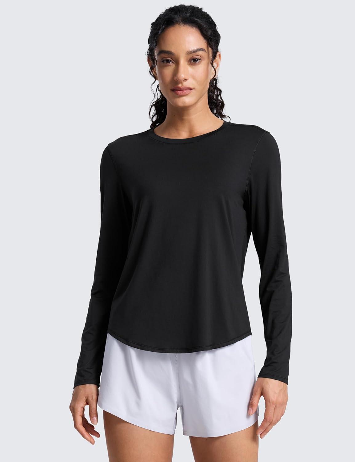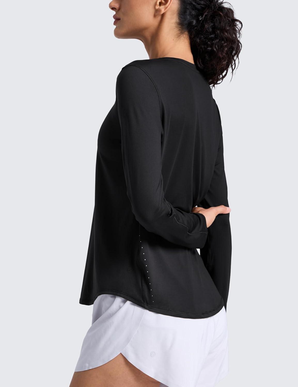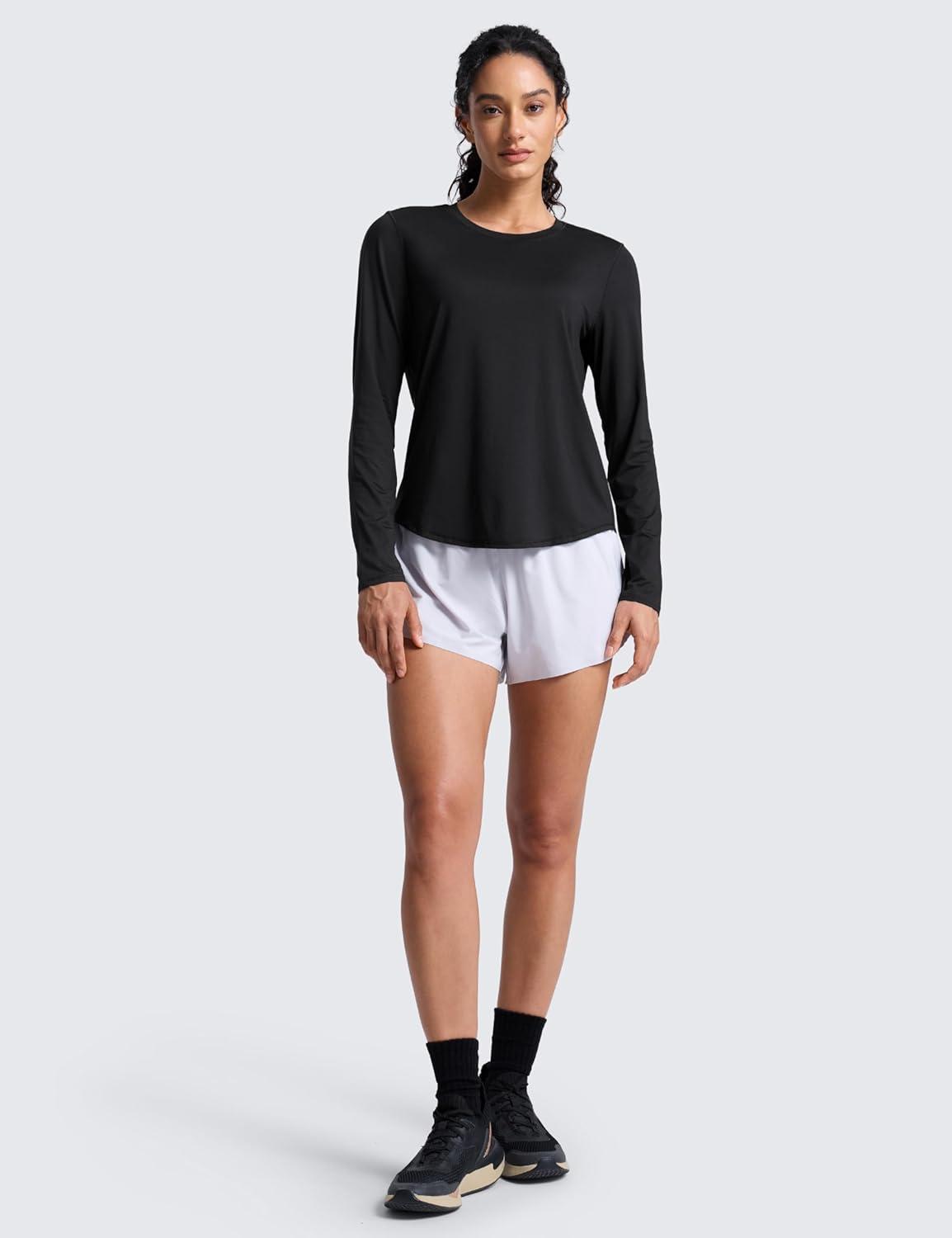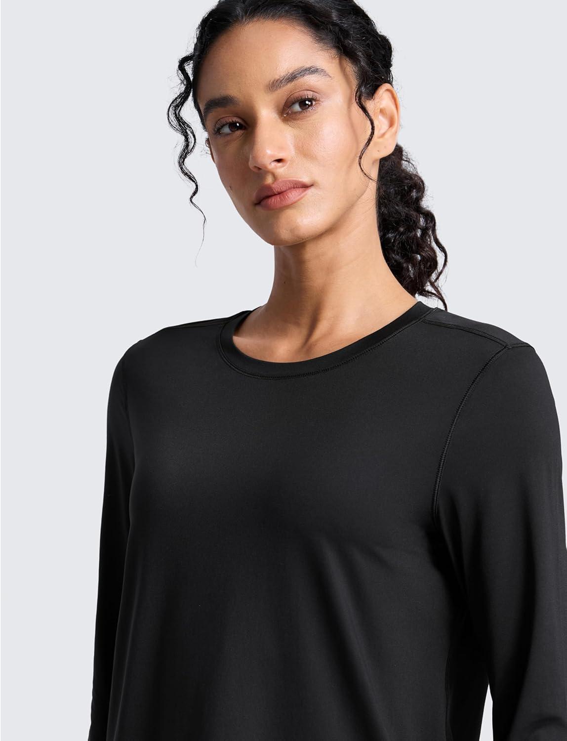 CRZ YOGA Lightweight Workout Long Sleeve Shirts for Women – Gym Running Fall Athletic Training T-Shirts High Neck Tops(Black)