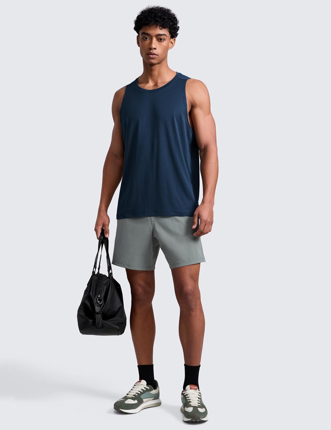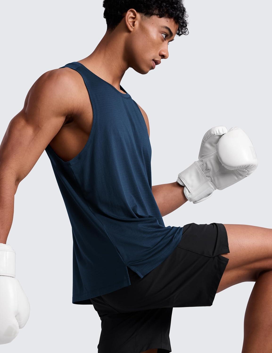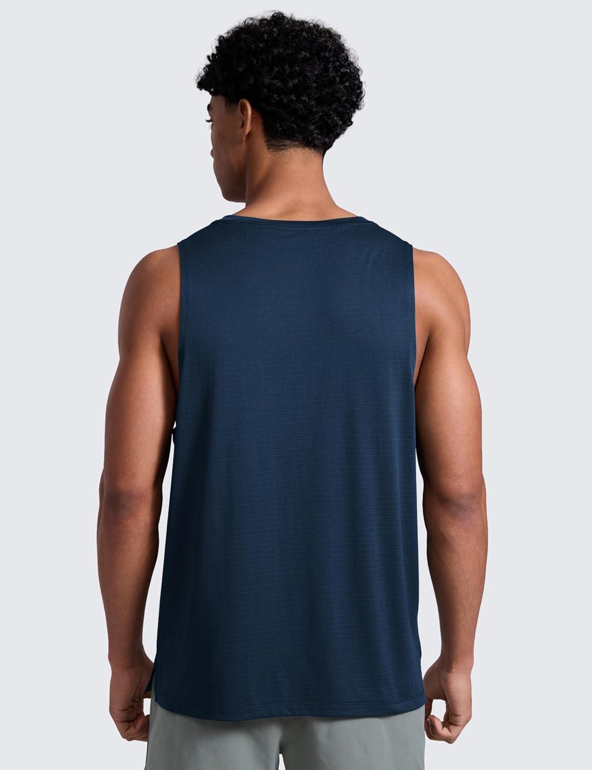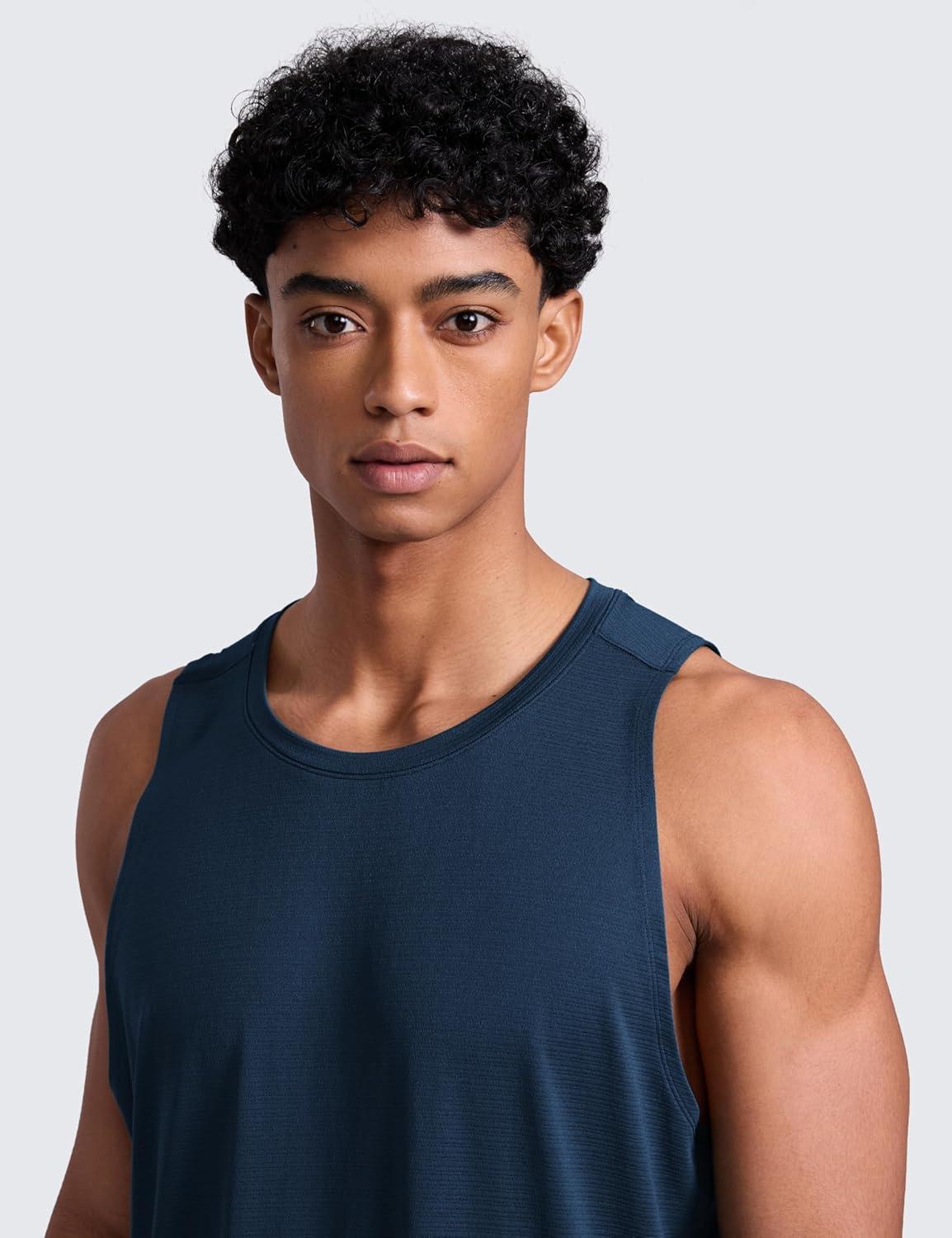 CRZ YOGA Lightweight Workout Tank Tops for Men - Crewneck Quick Dry Texture Muscle Athletic Gym Running Sleeveless Shirts(Nautical Navy Blue)