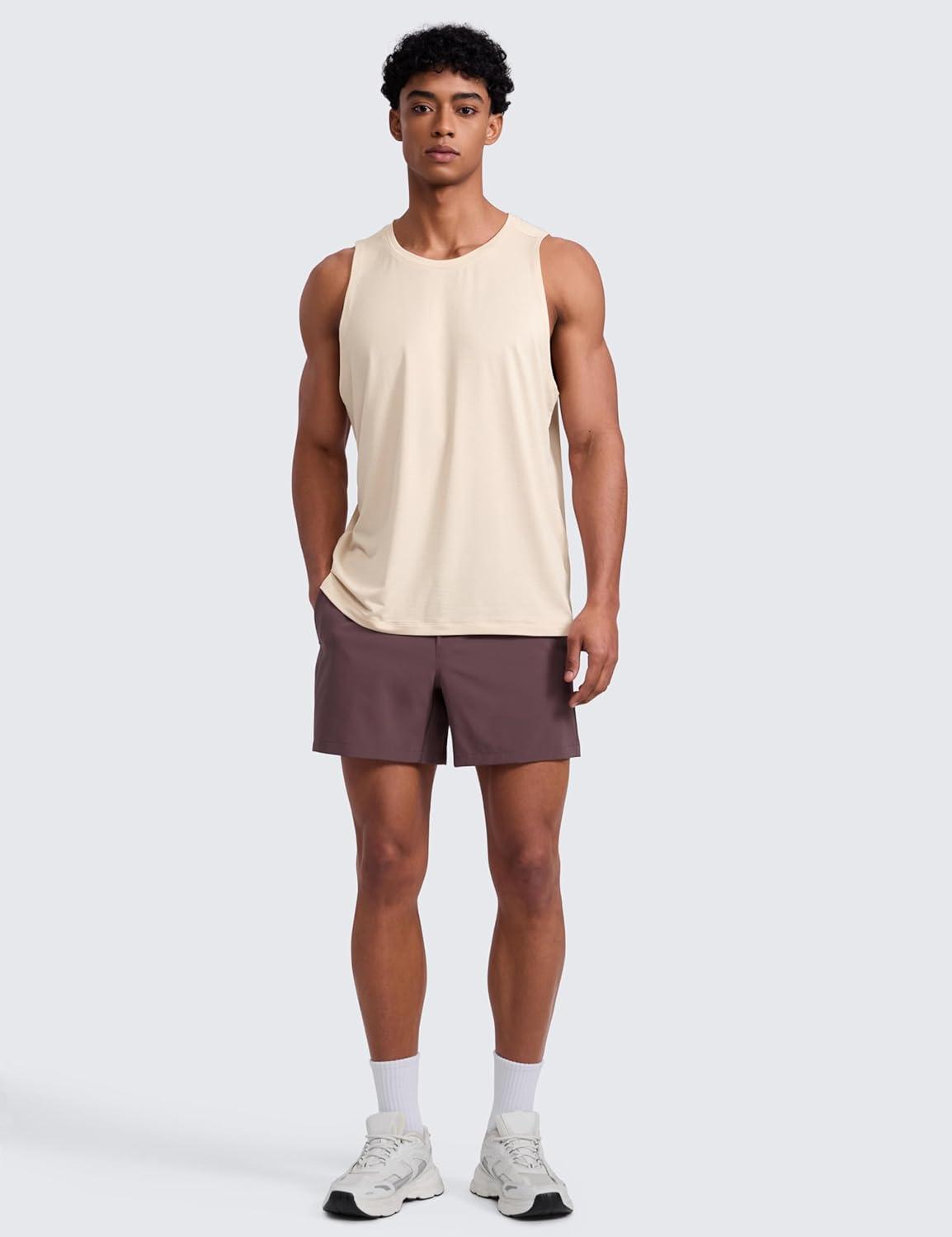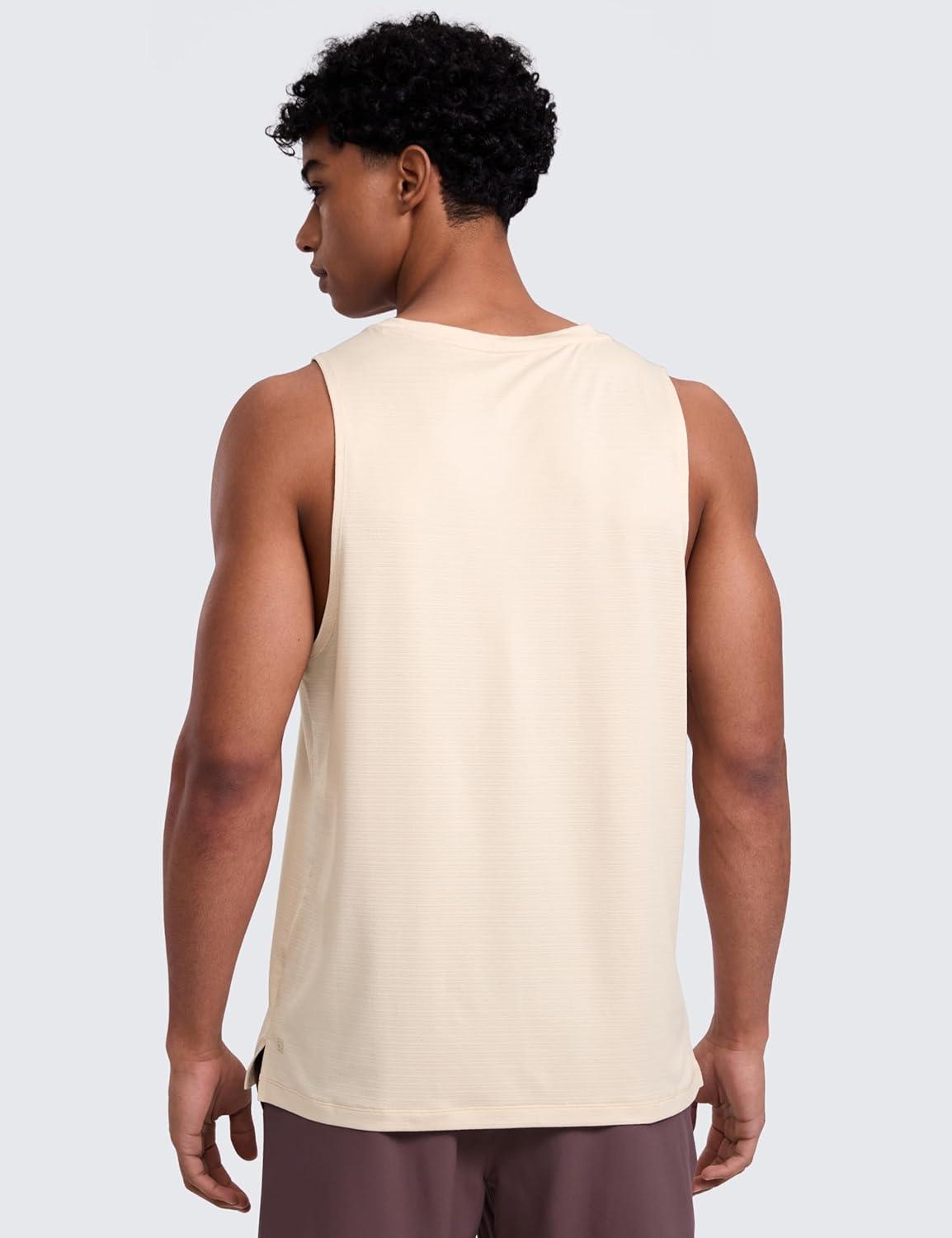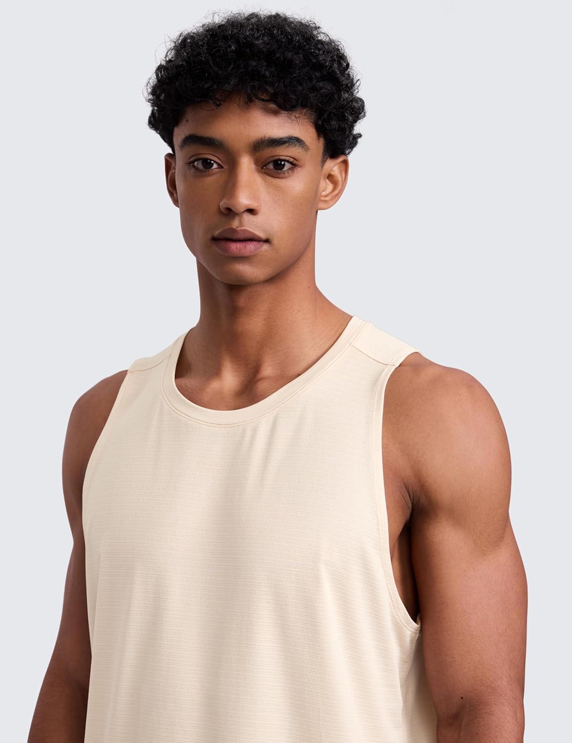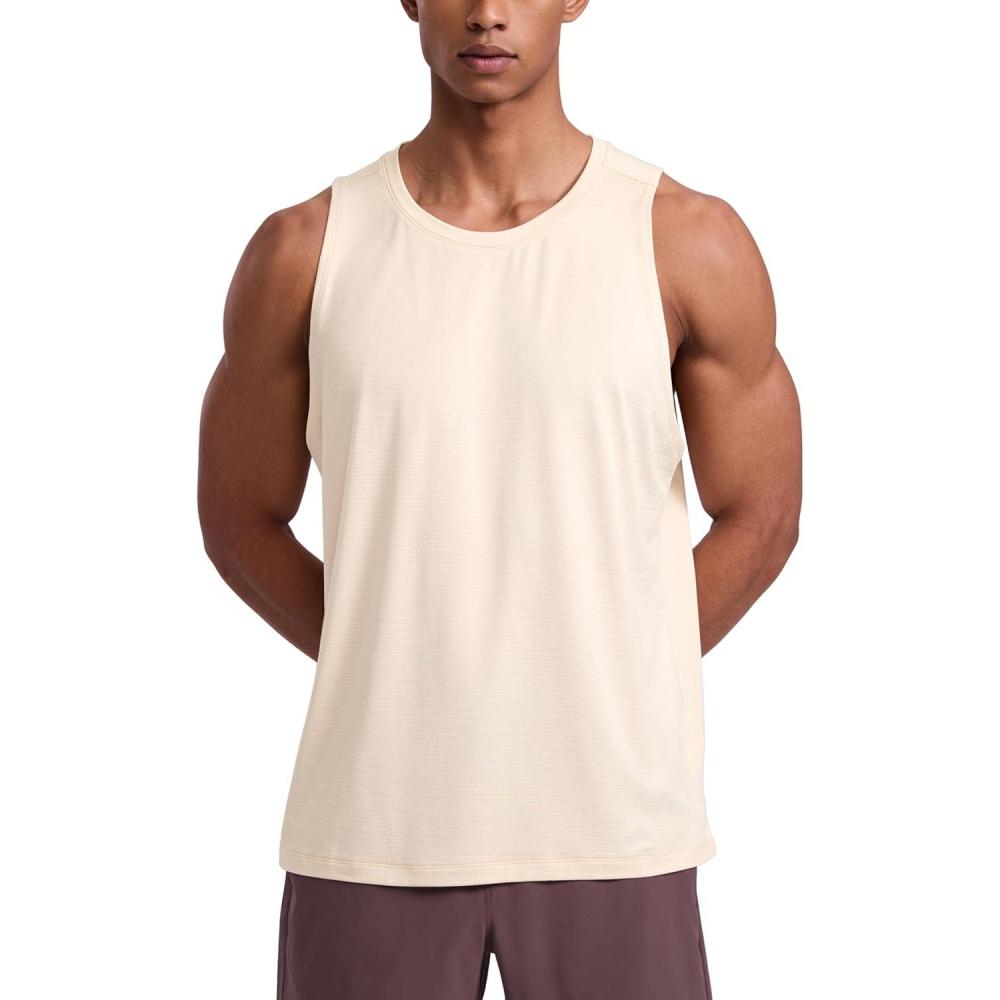 CRZ YOGA Lightweight Workout Tank Tops for Men – Crewneck Quick Dry Texture Muscle Athletic Gym Running Sleeveless Shirts(White Opal)