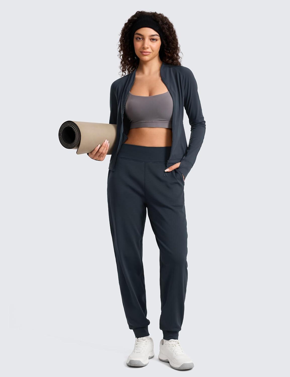 CRZ YOGA Matte Fleece Lined Jogger for Women 27.5″ – Thermal Casual Lounge Yoga Pants Winter Warm(True Navy)