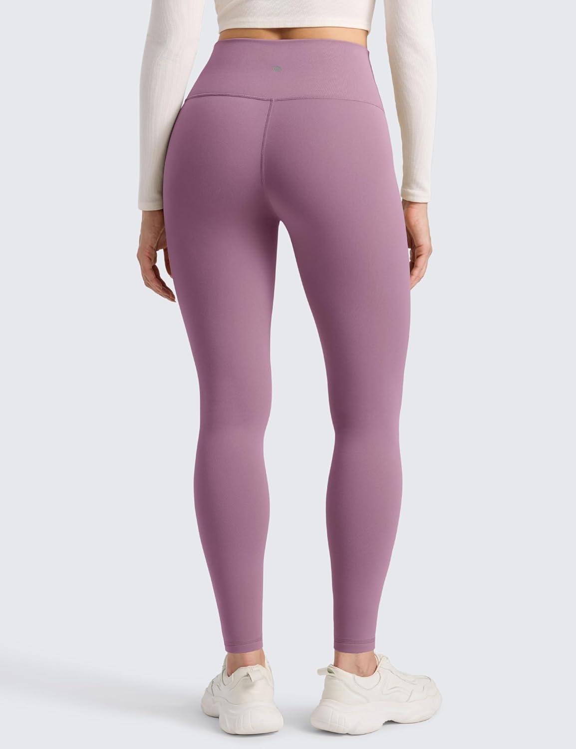 CRZ YOGA Matte Fleece Lined Leggings 28” – Thermal Casual Lounge Workout Womens Yoga Full Length Pants Winter Warm(Light Lavender)
