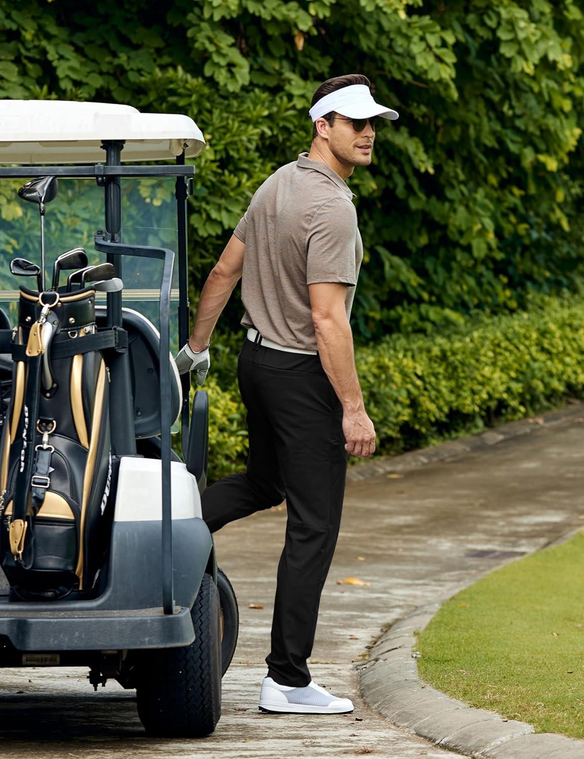 CRZ YOGA Men's All Day Comfy Golf Pants - 28"/30"/32"/34"/36" Quick Dry Lightweight Work Casual Trousers with Pockets(Black)