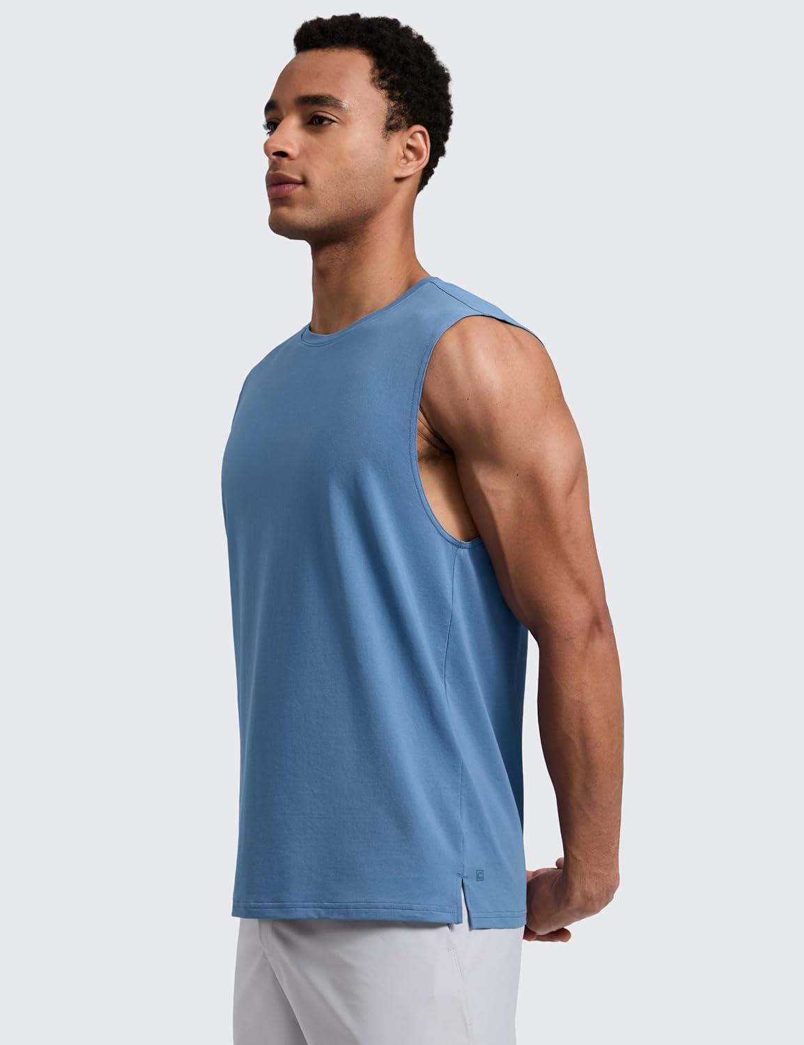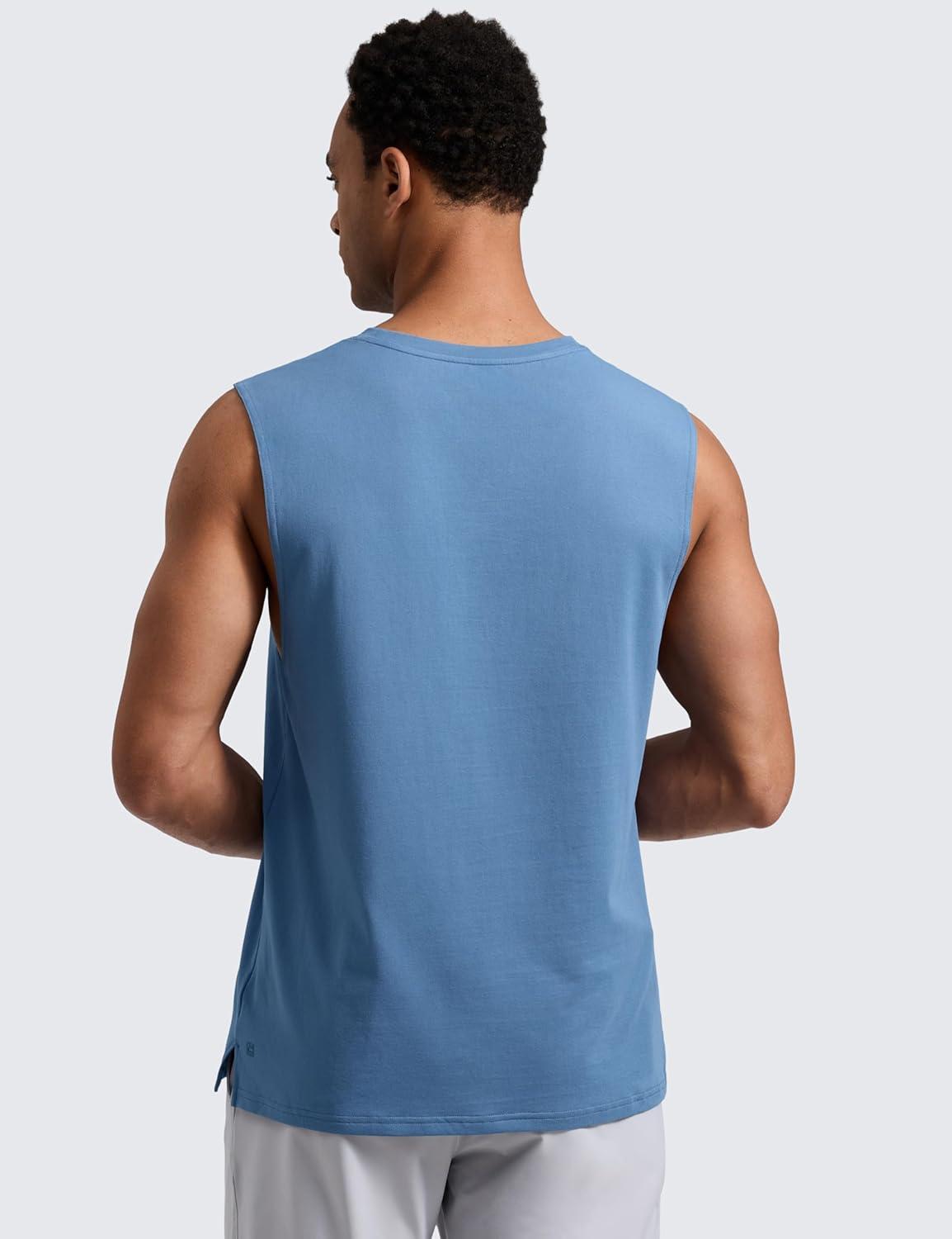 CRZ YOGA Mens Cotton-Blend Athletic Tank Tops for Men - Moisture Wicking Soft Workout Casual Sleeveless Muscle Shirts(Washed Denim)
