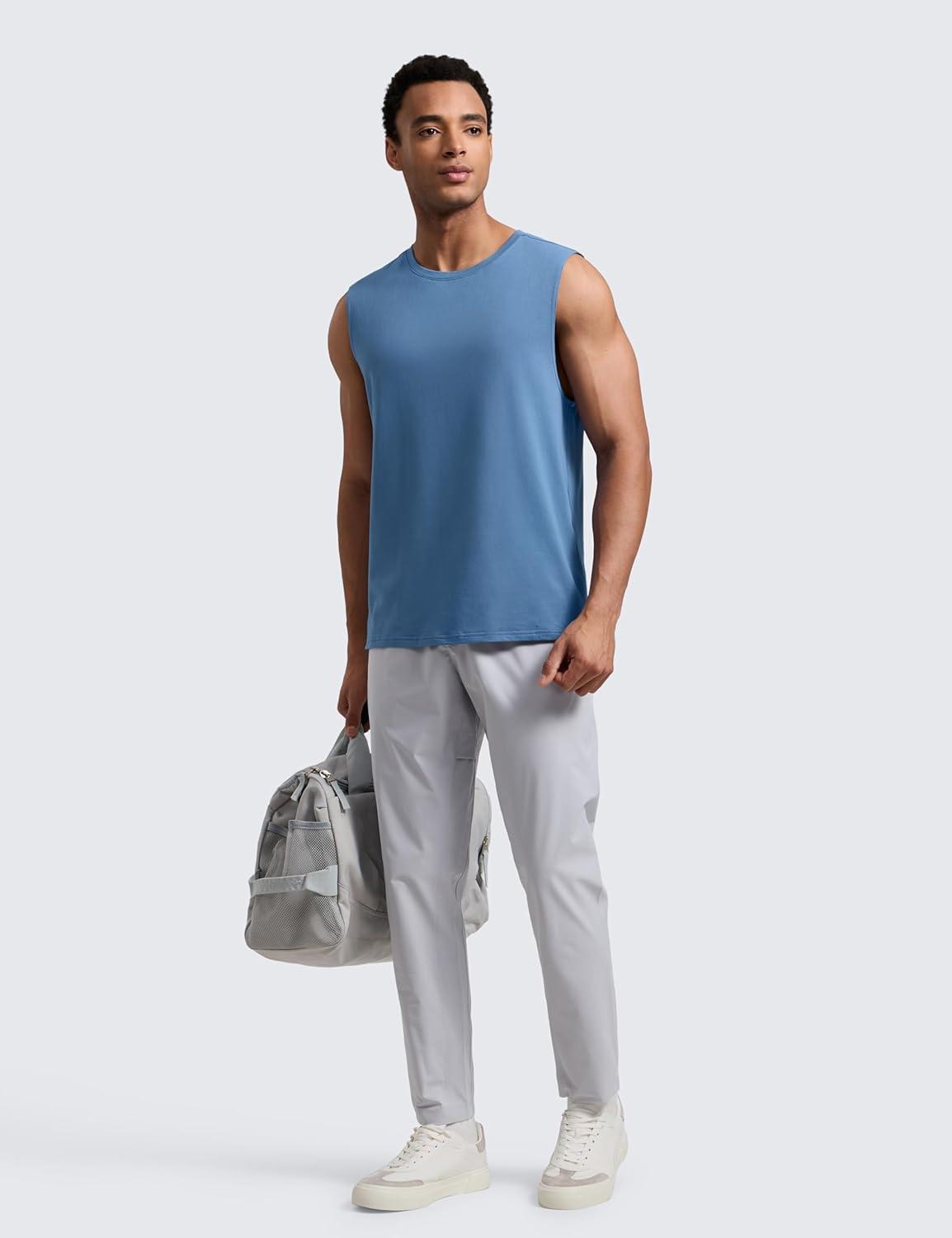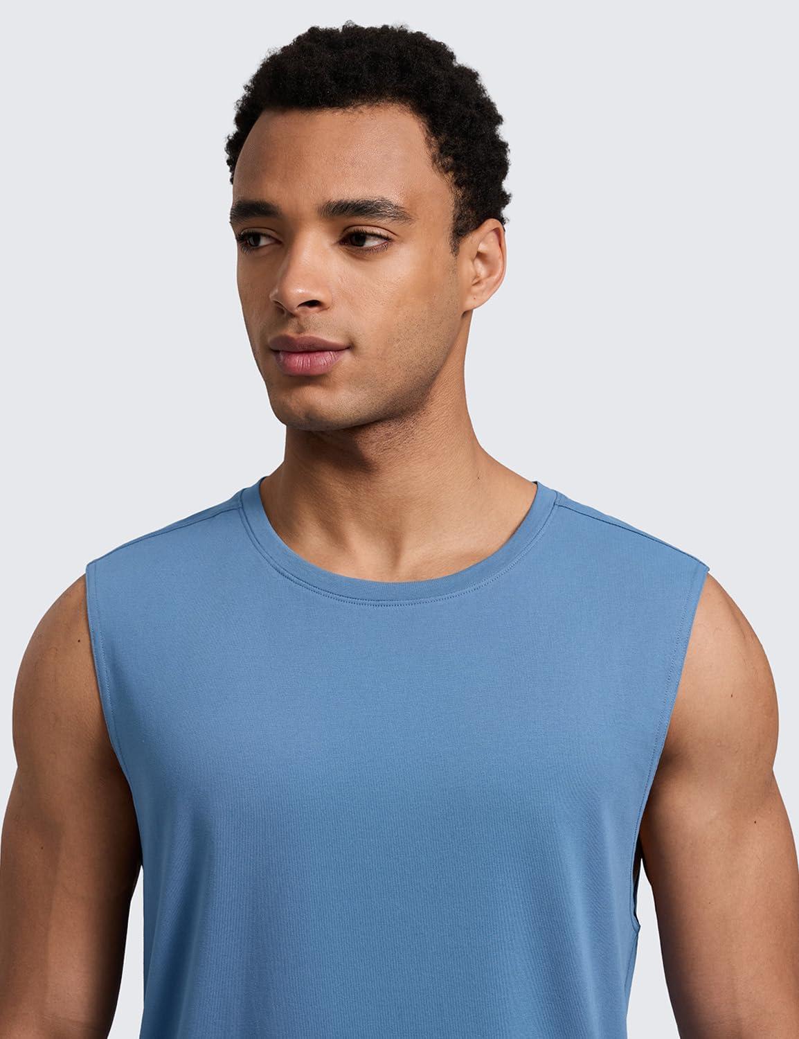 CRZ YOGA Mens Cotton-Blend Athletic Tank Tops for Men – Moisture Wicking Soft Workout Casual Sleeveless Muscle Shirts(Washed Denim)