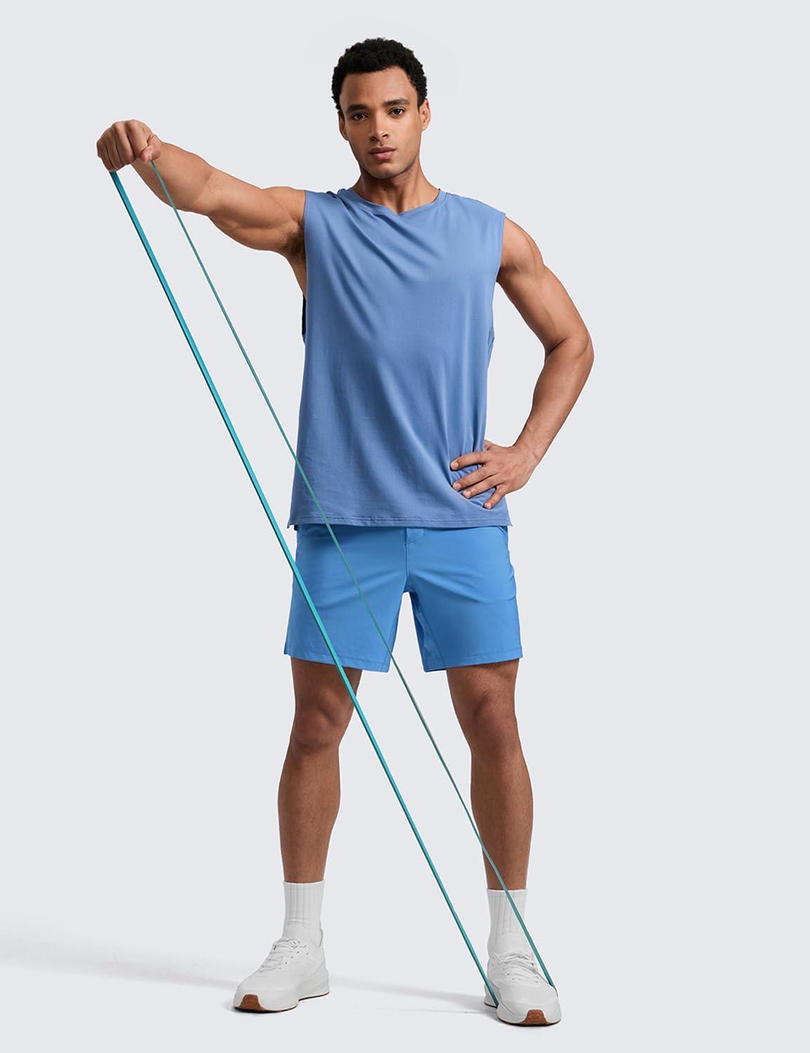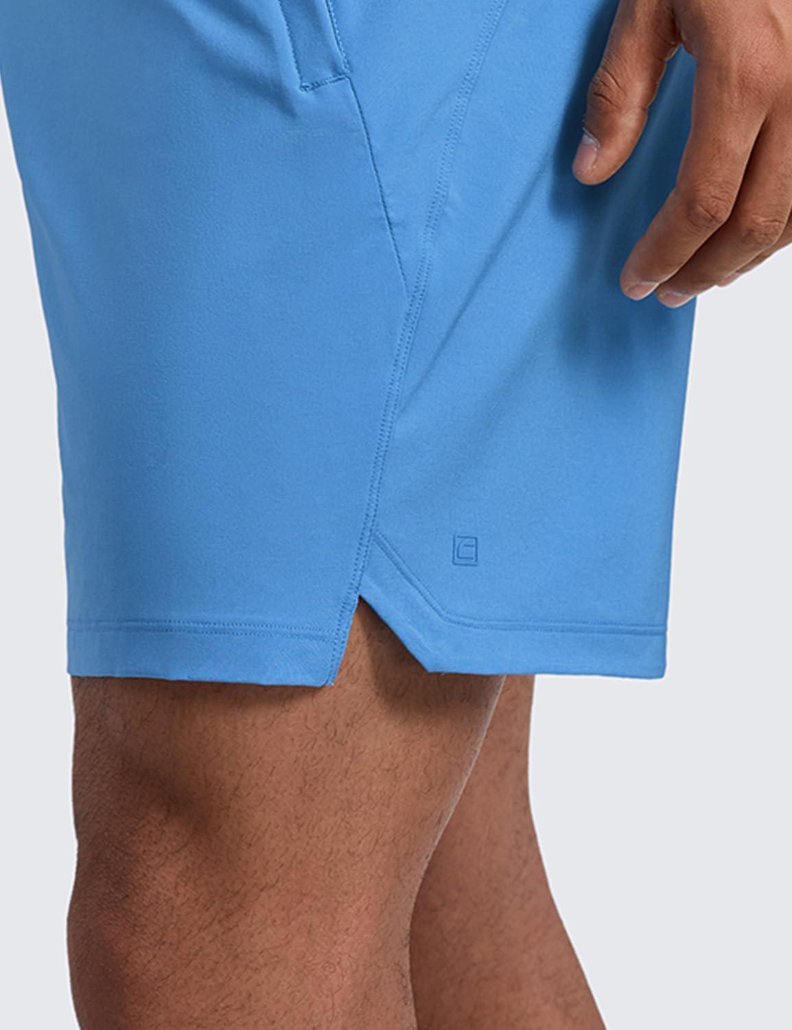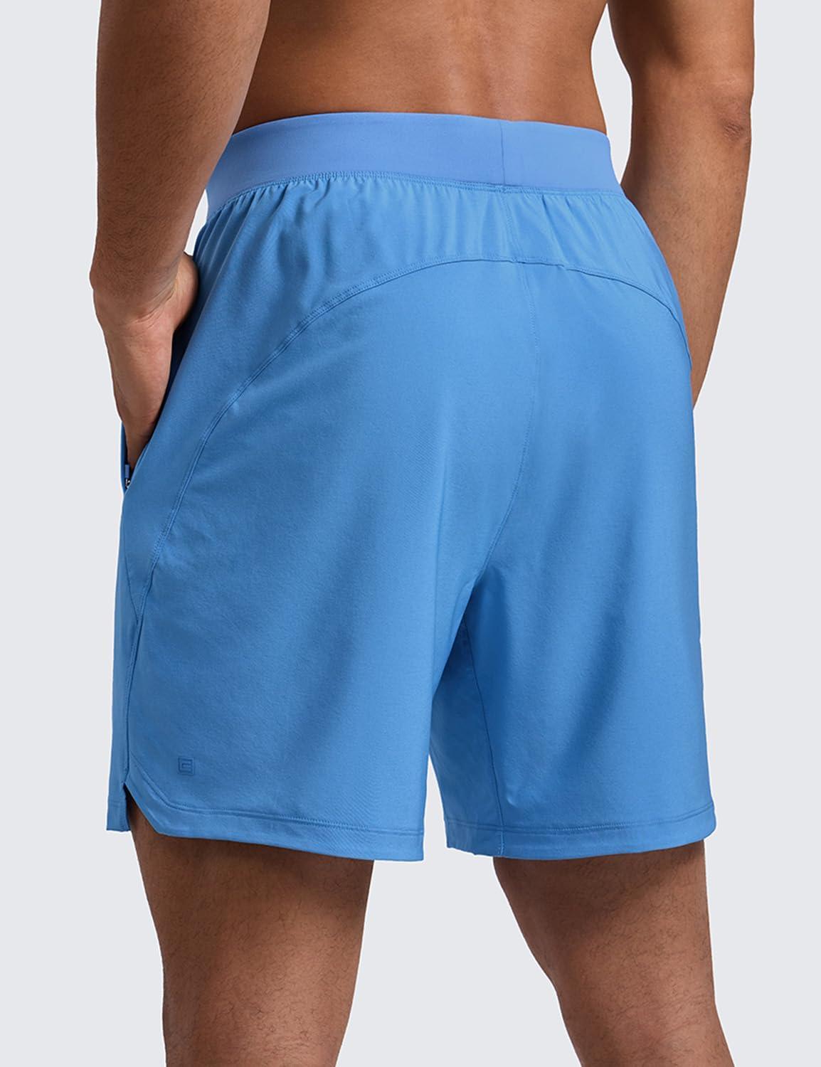 CRZ YOGA Men’s Linerless Split Training Shorts 7″ – Lightweight Quick Dry Soft Workout Running Athletic Gym with Pockets(Party Blue)