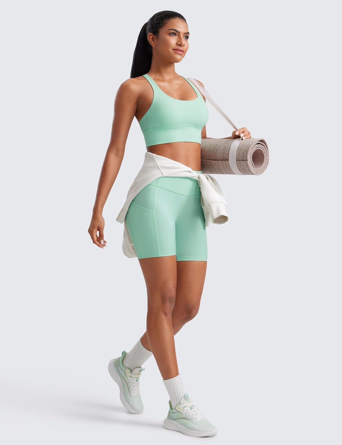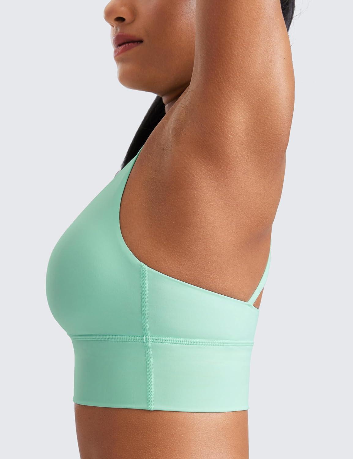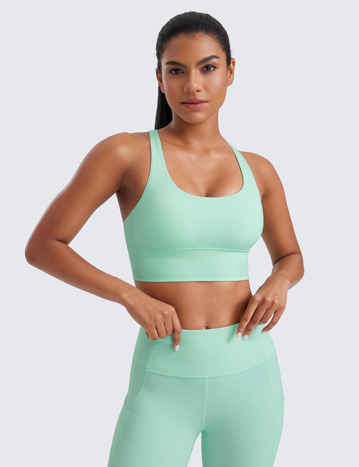 CRZ YOGA Naked Feeling Strappy Longline Sports Bras for Women – Medium Impact Criss Cross Yoga Padded Workout Crop Top(Mint Moment)