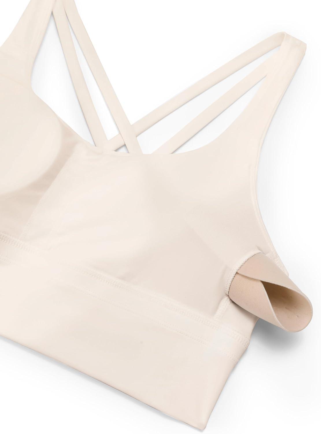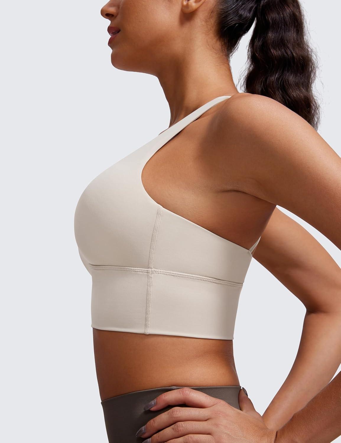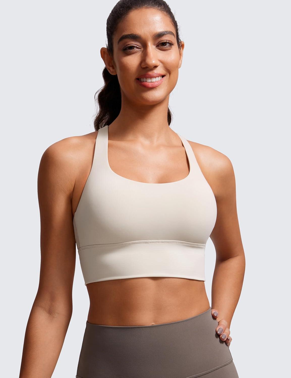 CRZ YOGA Naked Feeling Strappy Longline Sports Bras for Women – Medium Impact Criss Cross Yoga Padded Workout Crop Top(Mojave Tan)