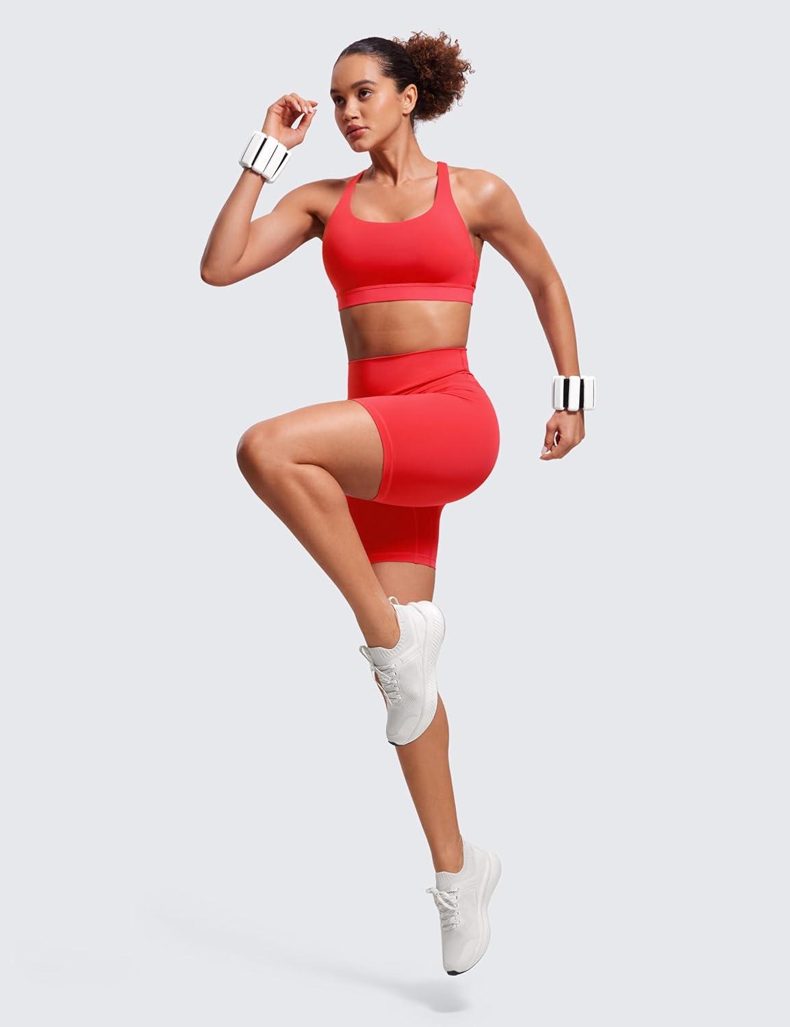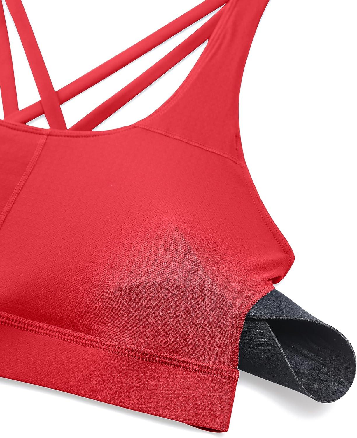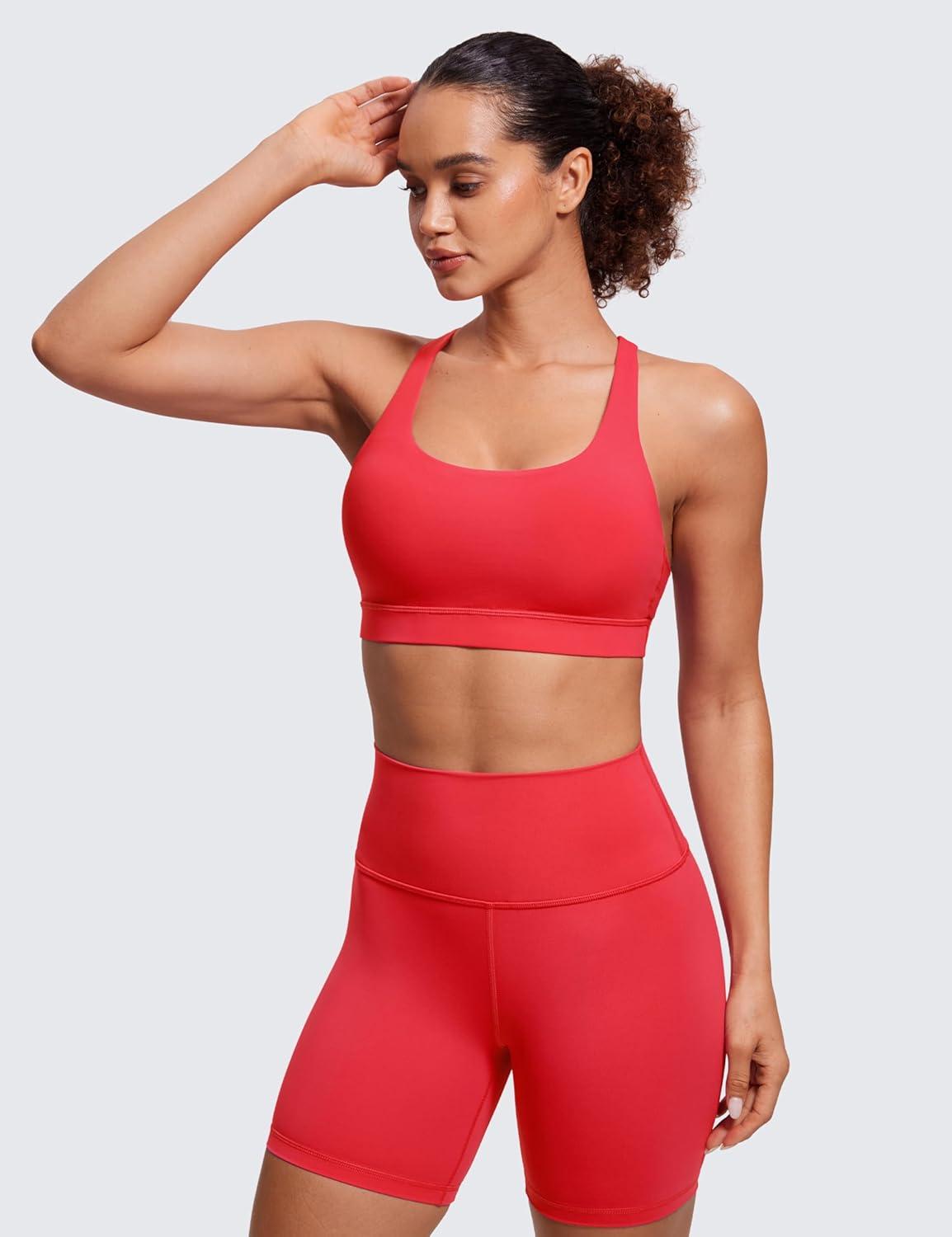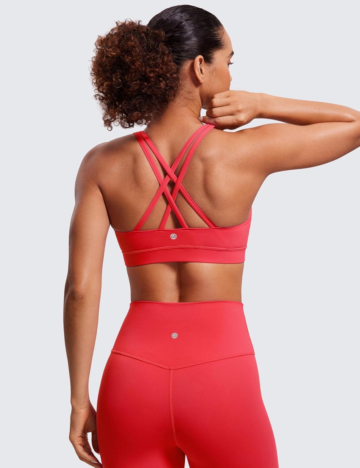 CRZ YOGA Naked Feeling Strappy Padded Sports Bras for Women – Fitness Workout Top Criss Cross Back Yoga Cami(Crimson)