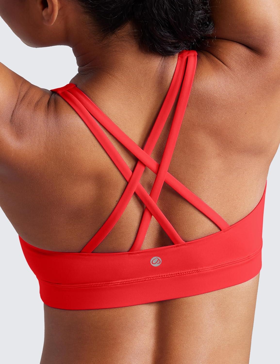 imageCRZ YOGA Naked Feeling Strappy Padded Sports Bras for Women  Fitness Workout Top Criss Cross Back Yoga CamiDeep Red