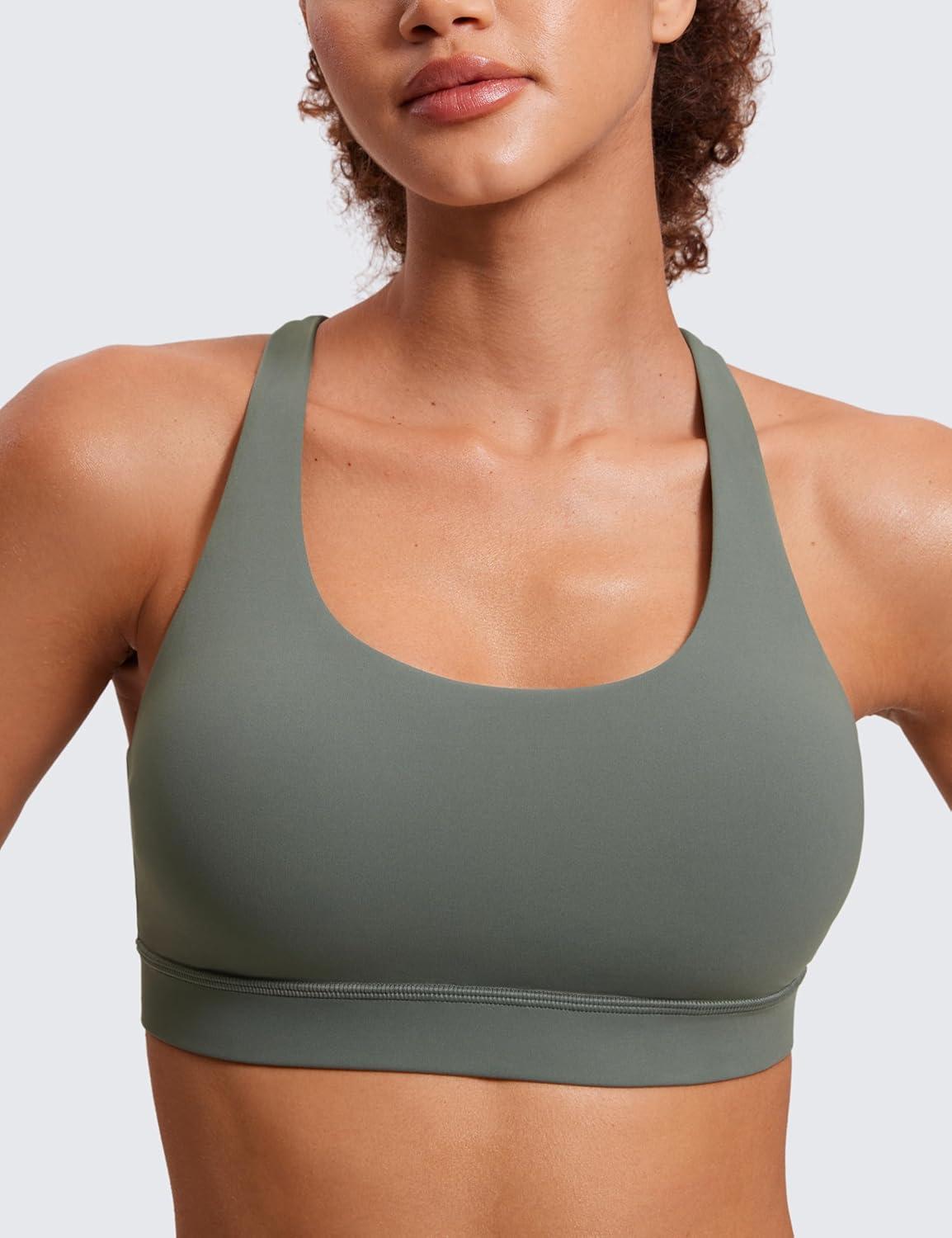 imageCRZ YOGA Naked Feeling Strappy Padded Sports Bras for Women  Fitness Workout Top Criss Cross Back Yoga CamiGrey Sage