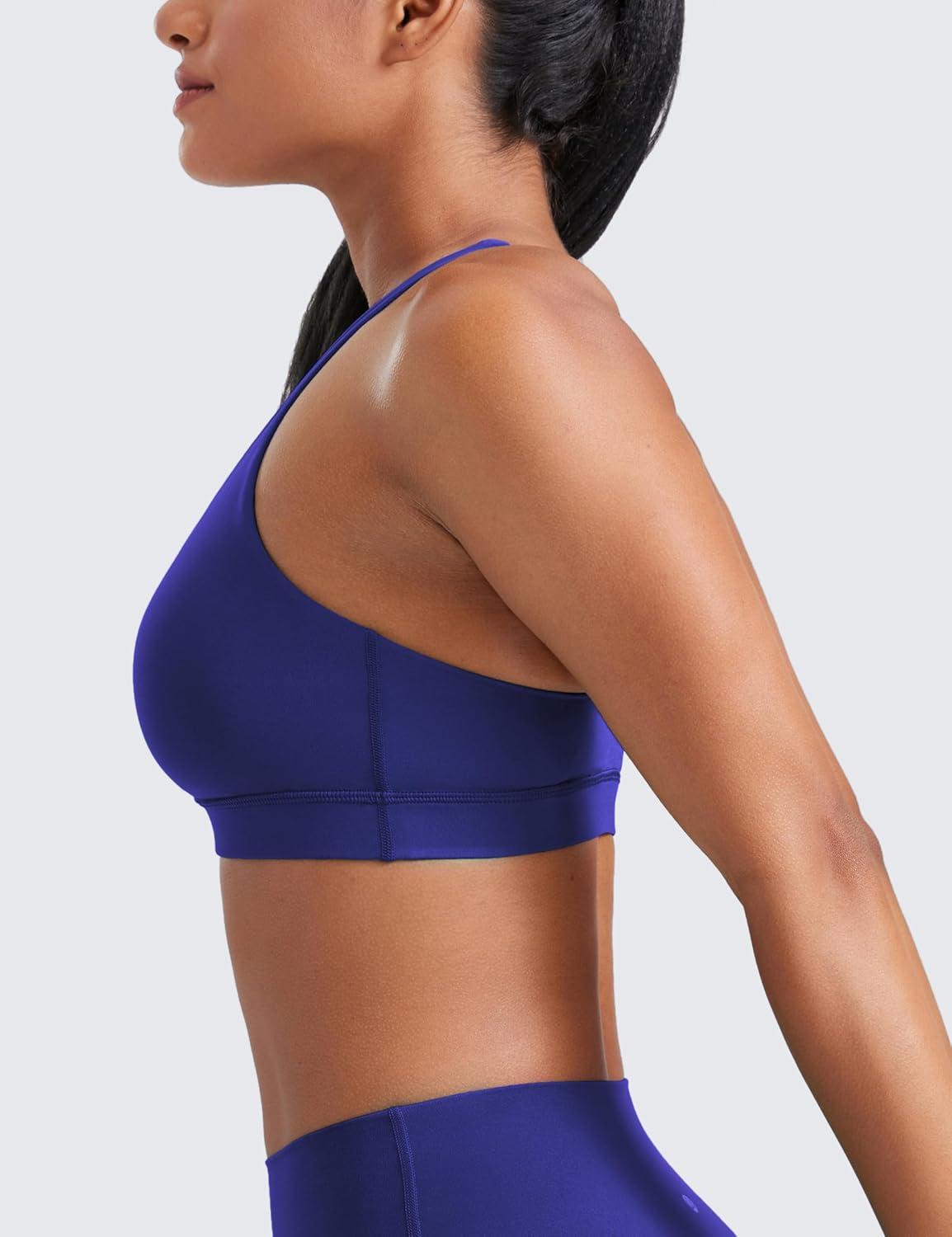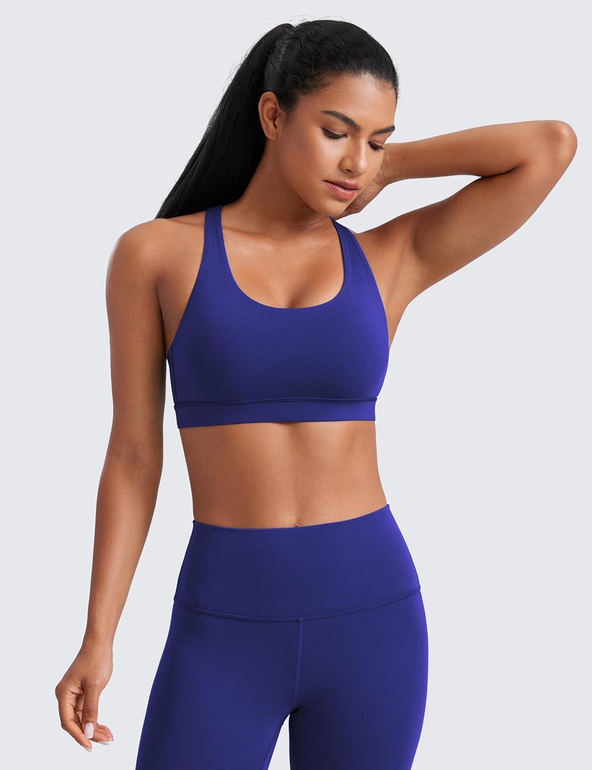CRZ YOGA Naked Feeling Strappy Padded Sports Bras for Women – Fitness Workout Top Criss Cross Back Yoga Cami(True Navy)