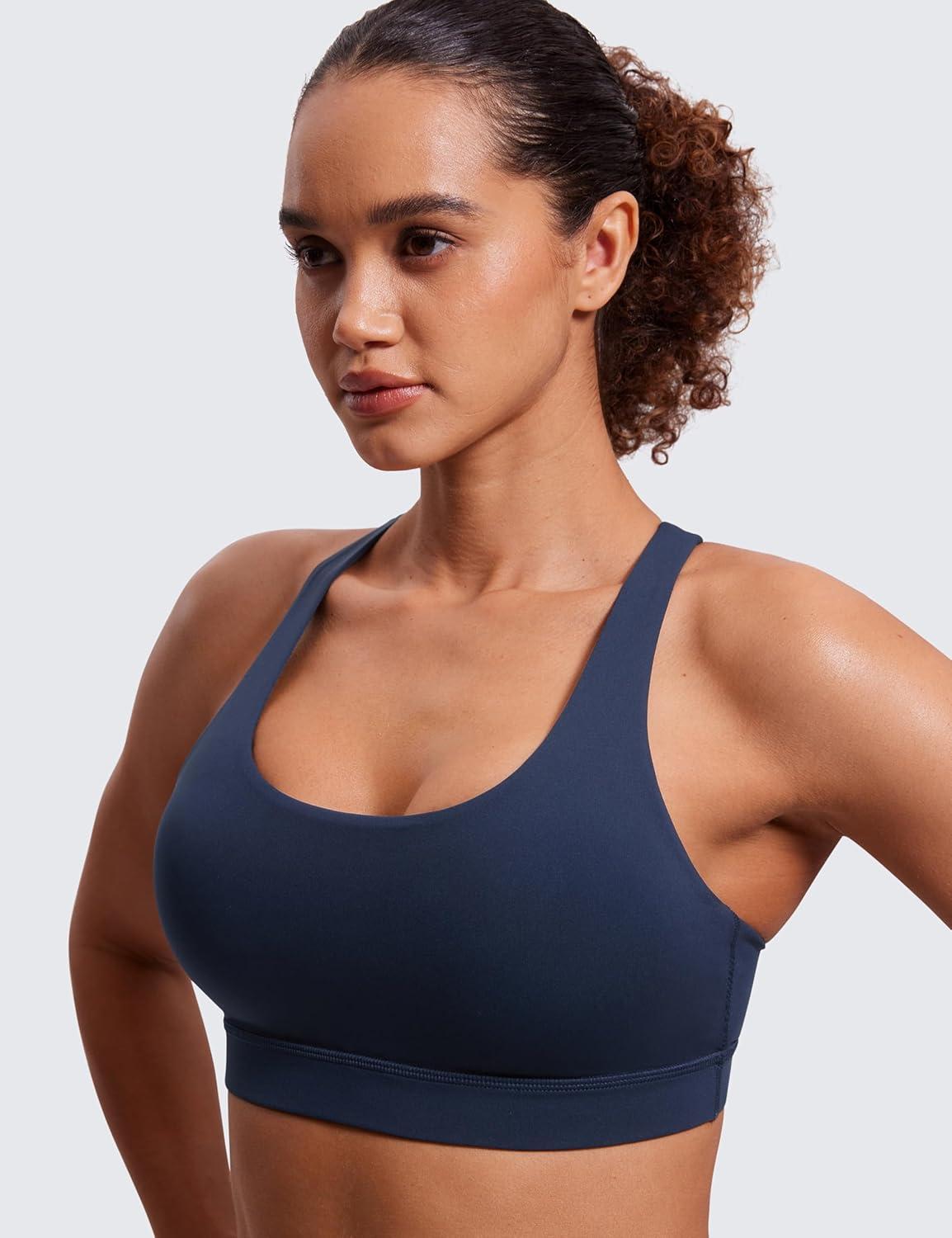imageCRZ YOGA Naked Feeling Strappy Padded Sports Bras for Women  Fitness Workout Top Criss Cross Back Yoga CamiNavy