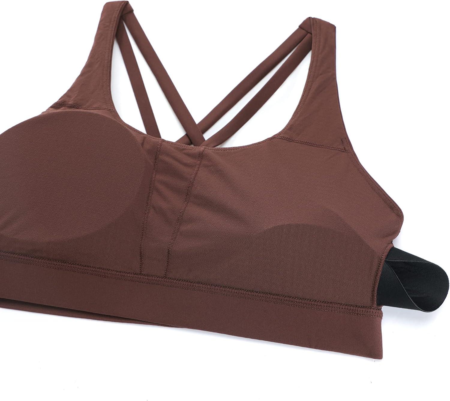 CRZ YOGA Naked Feeling Strappy Padded Sports Bras for Women – Fitness Workout Top Criss Cross Back Yoga Cami(Hot Fudge Brown)