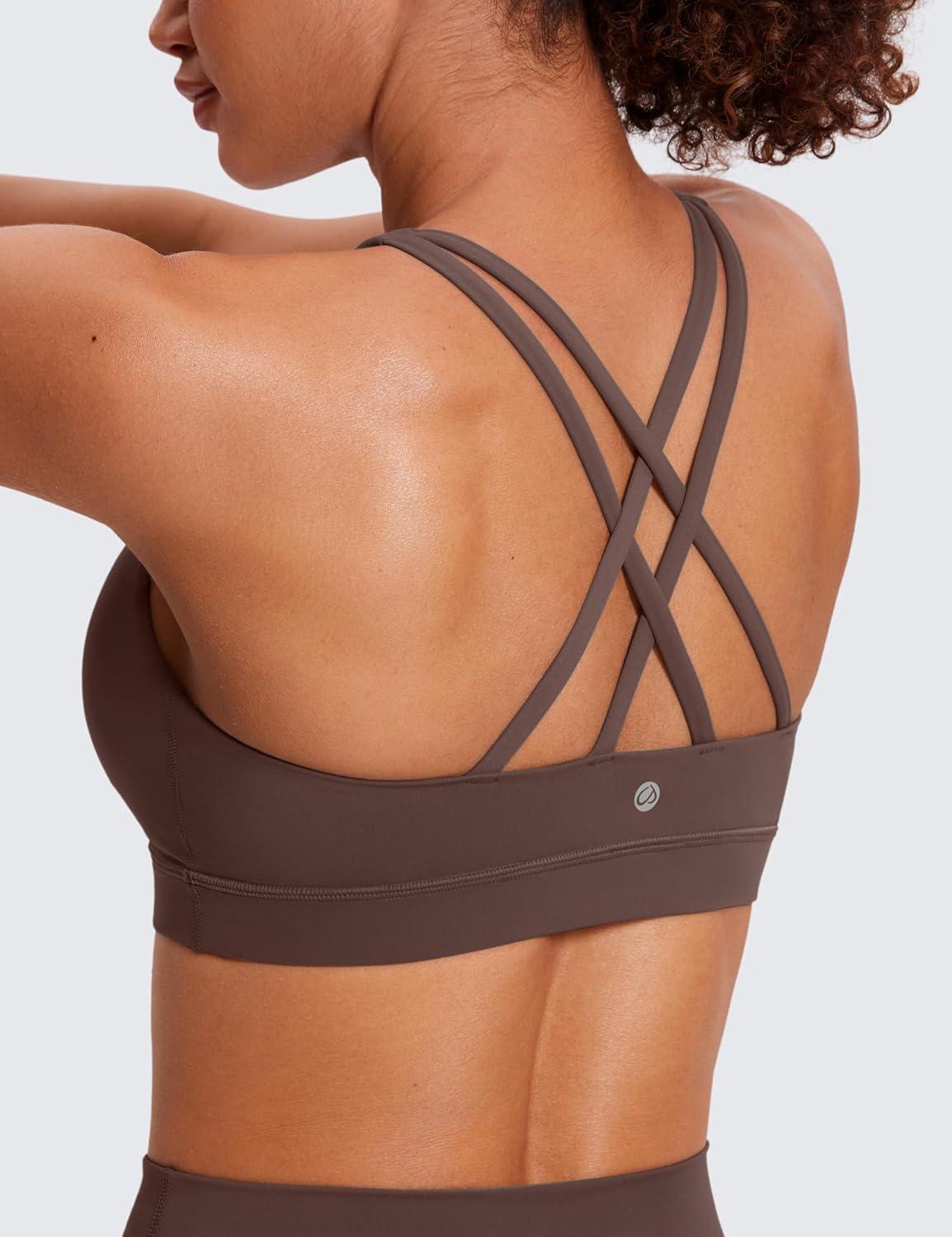 imageCRZ YOGA Naked Feeling Strappy Padded Sports Bras for Women  Fitness Workout Top Criss Cross Back Yoga CamiHot Fudge Brown
