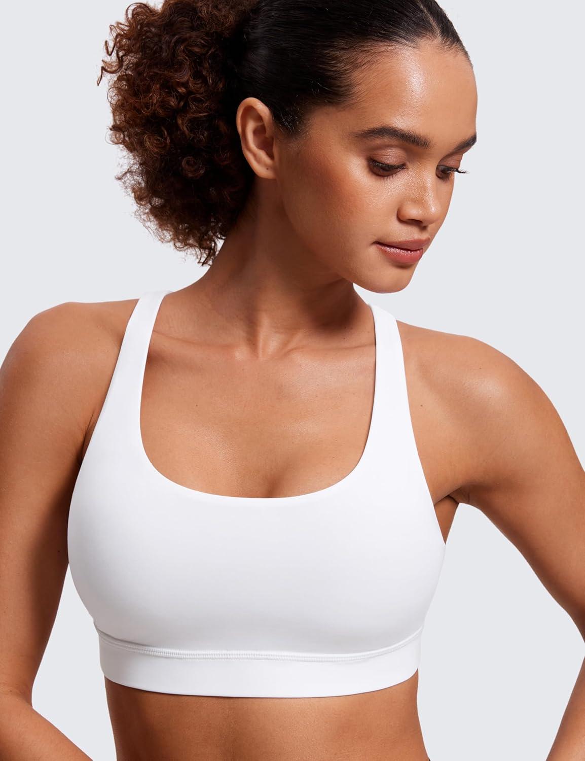 CRZ YOGA Naked Feeling Strappy Padded Sports Bras for Women – Fitness Workout Top Criss Cross Back Yoga Cami(White)