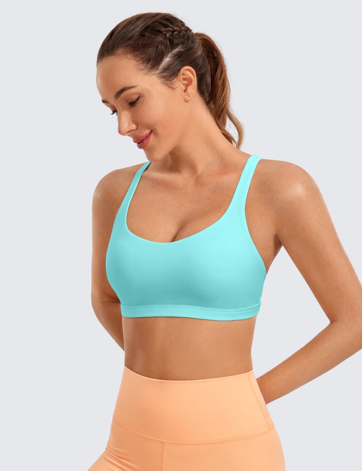 CRZ YOGA Naked Feeling Strappy Sports Bras for Women – Criss Cross Back Wireless Padded Cami Yoga Workout Top(Turquoise)