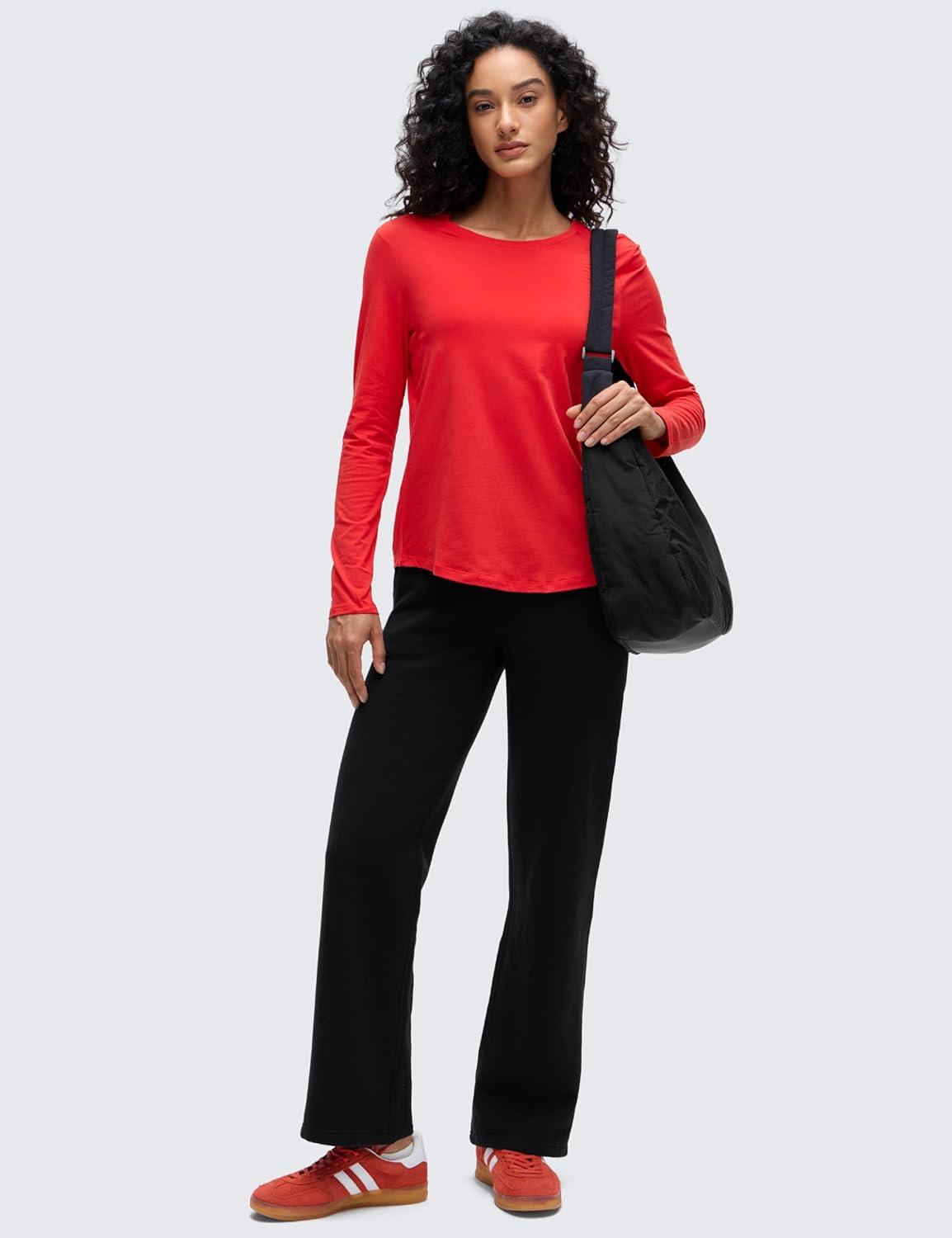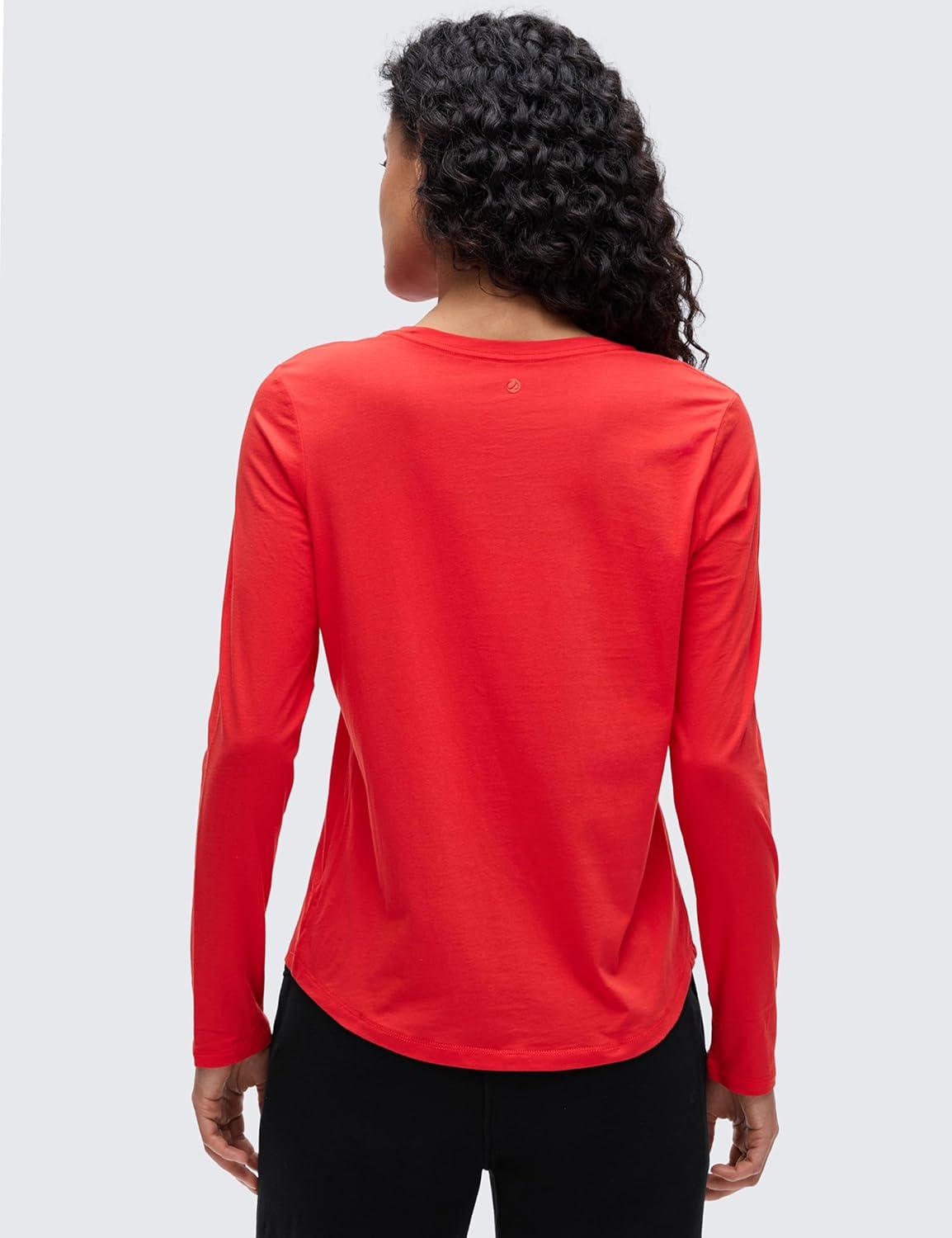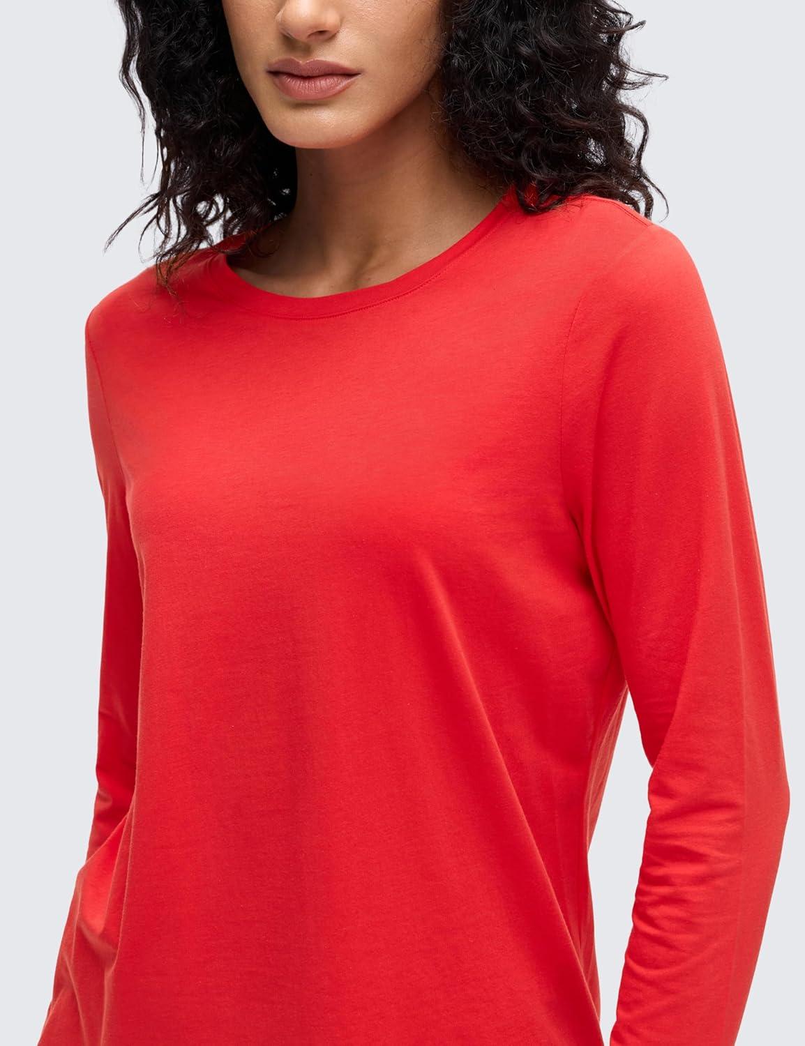 CRZ YOGA Pima Cotton Crewneck Long Sleeve Shirts for Women – Workout Athletic Yoga Casual Tops Soft Plain T-Shirt(Deep Red)