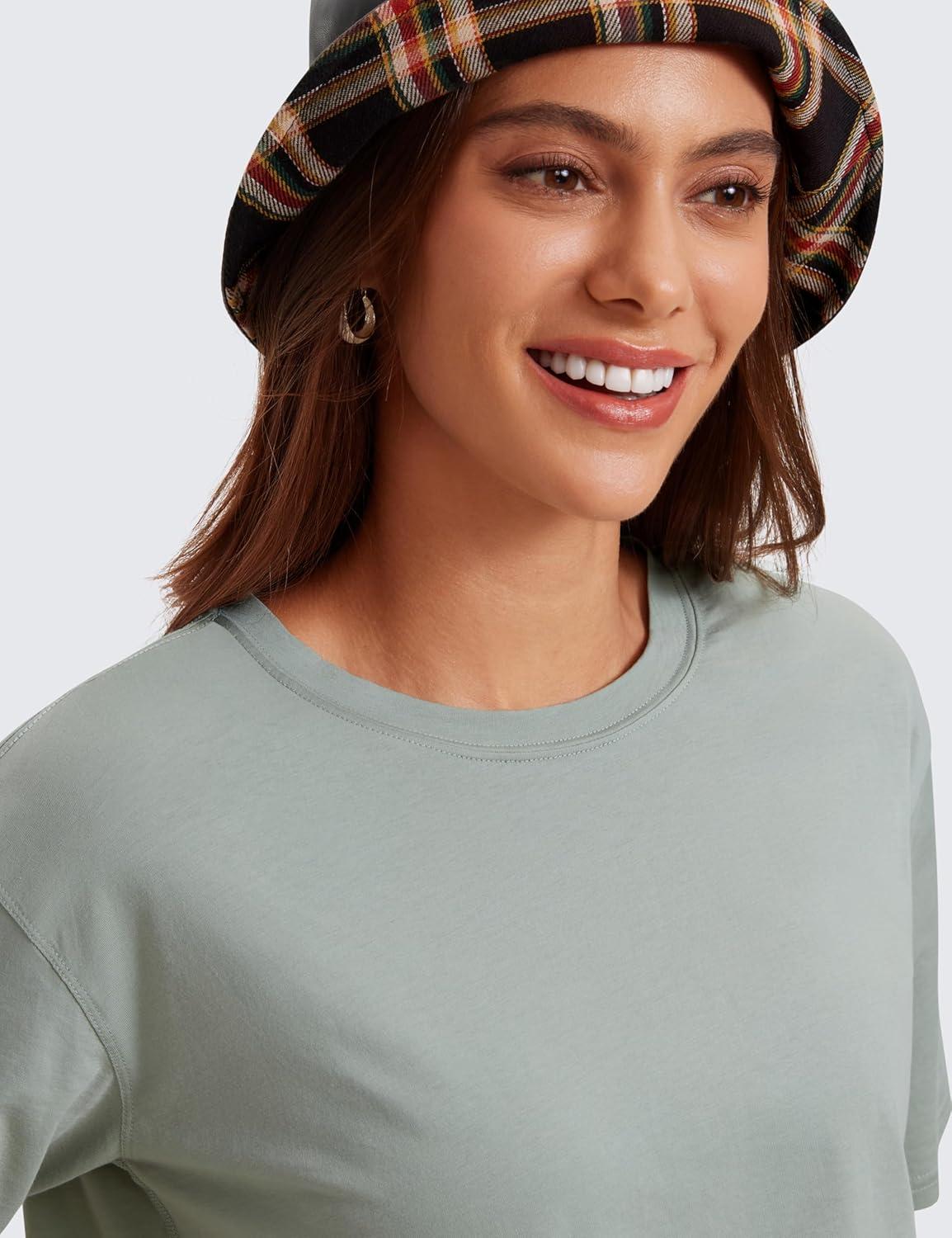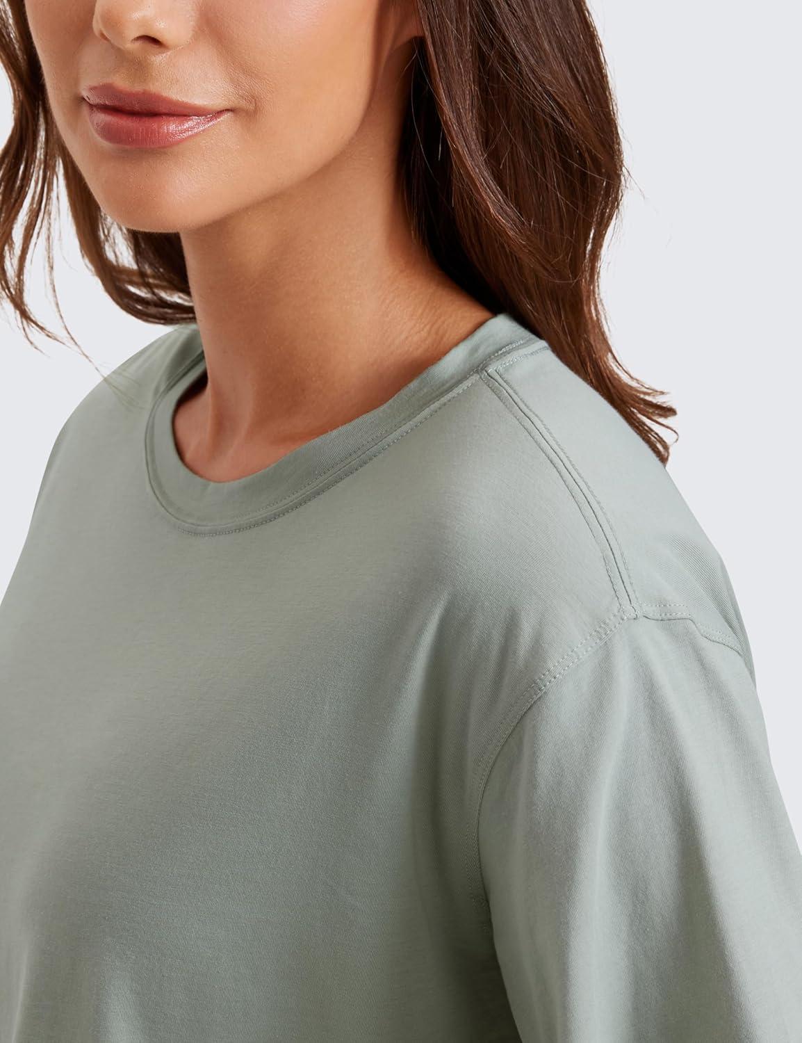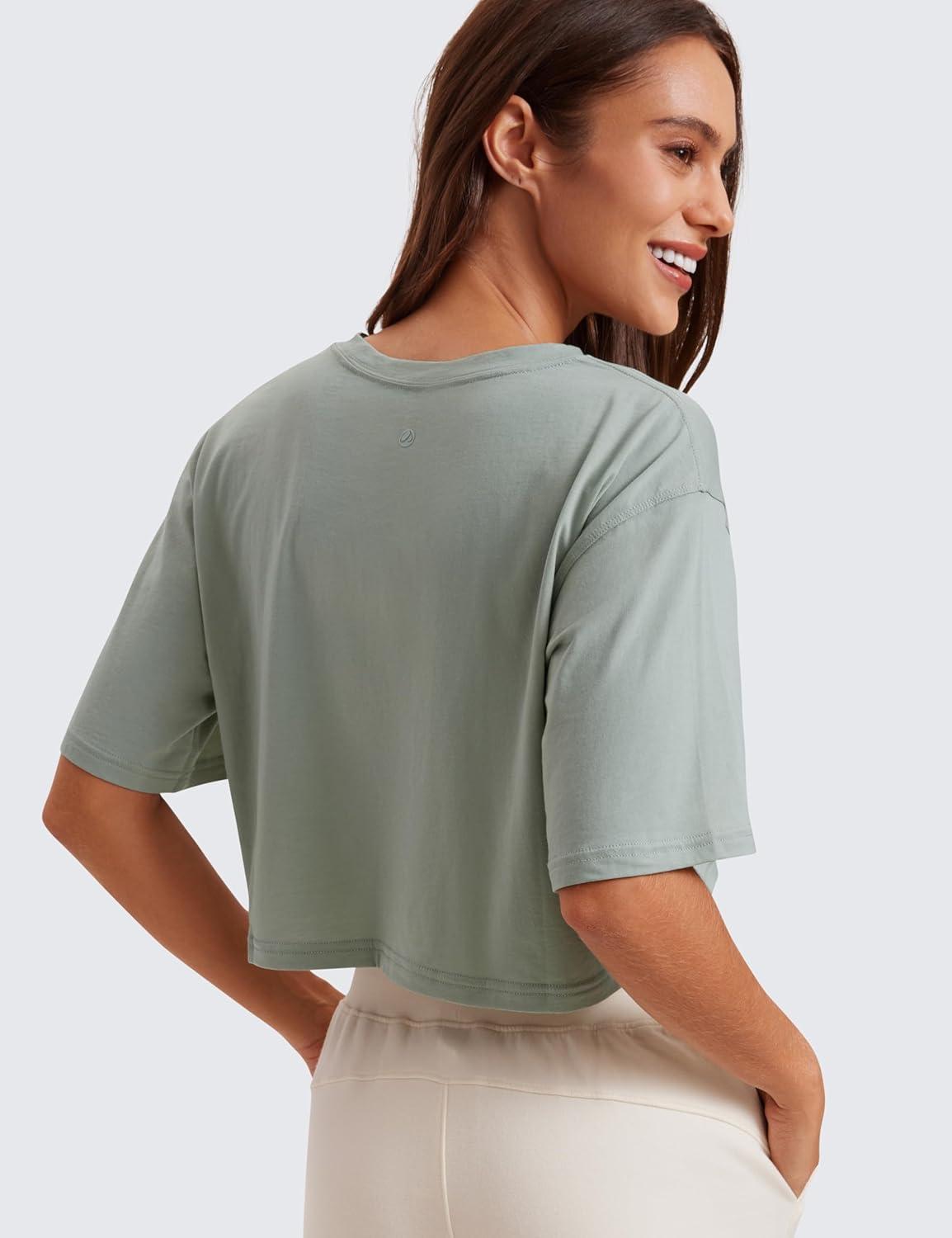 CRZ YOGA Pima Cotton Loose Crop T-Shirts for Women – Workout Yoga Casual Athletic Running Short Sleeve Shirts Crewneck Tops(Jade Grey)