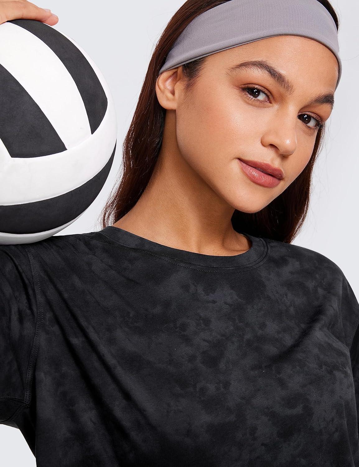 imageCRZ YOGA Pima Cotton Loose Crop TShirts for Women  Workout Yoga Casual Athletic Running Short Sleeve Shirts Crewneck TopsTie Dye Smoke Ink