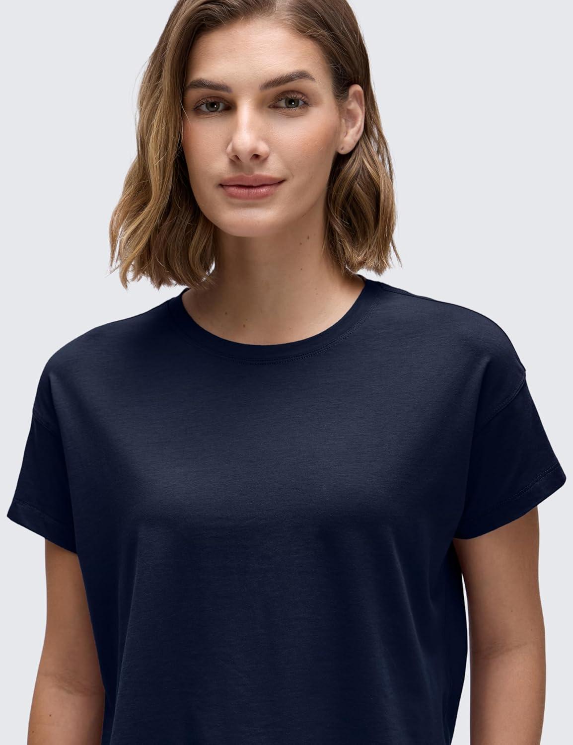 CRZ YOGA Pima Cotton Relaxed Crop T-Shirts for Women - Workout Athletic Gym Casual Short Sleeve Shirts Loose Crewneck Tops(Navy)