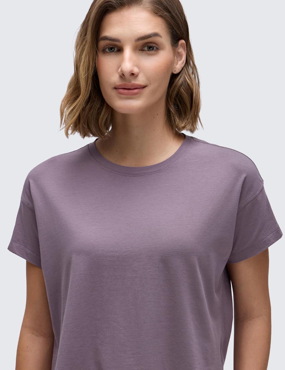 CRZ YOGA Pima Cotton Relaxed Crop T-Shirts for Women - Workout Athletic Gym Casual Short Sleeve Shirts Loose Crewneck Tops(Purple Gray)
