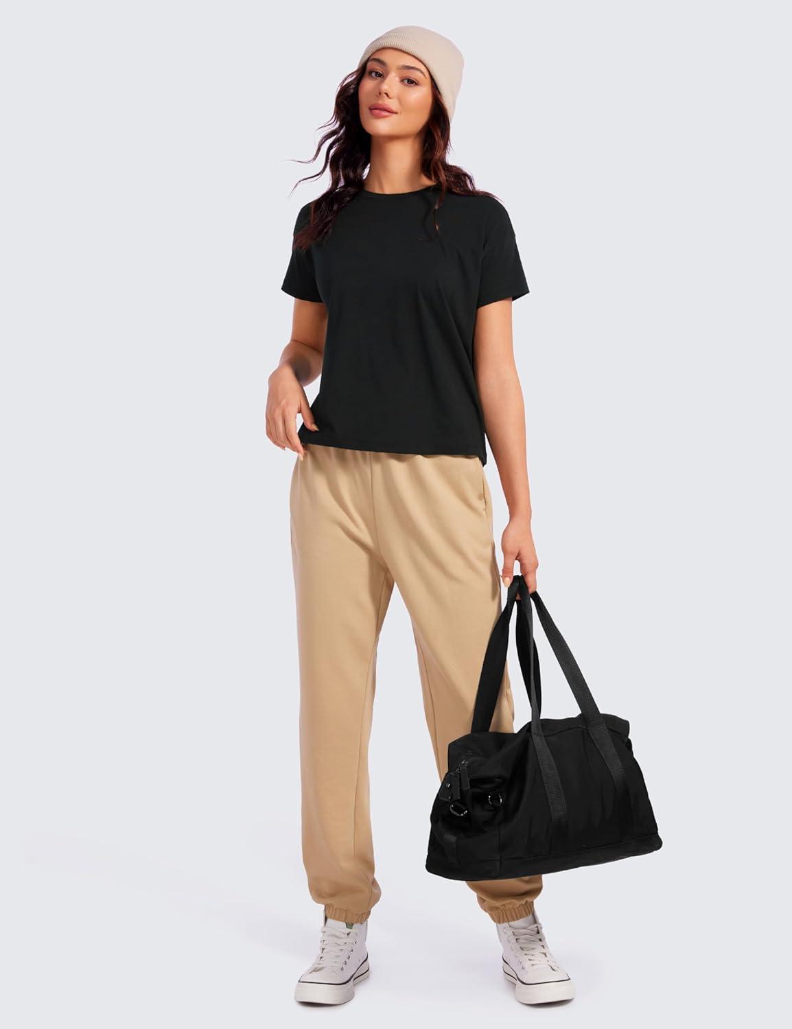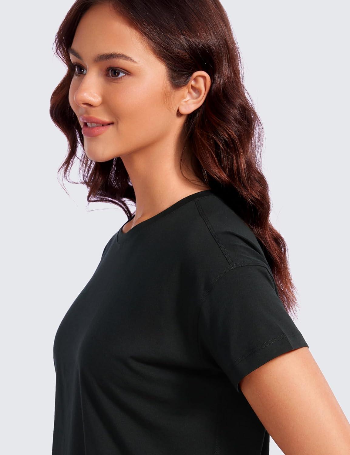 CRZ YOGA Pima Cotton Relaxed T-Shirts for Women – Workout Athletic Gym Casual Short Sleeve Shirts Basic Crewneck Hip Tops(Black)