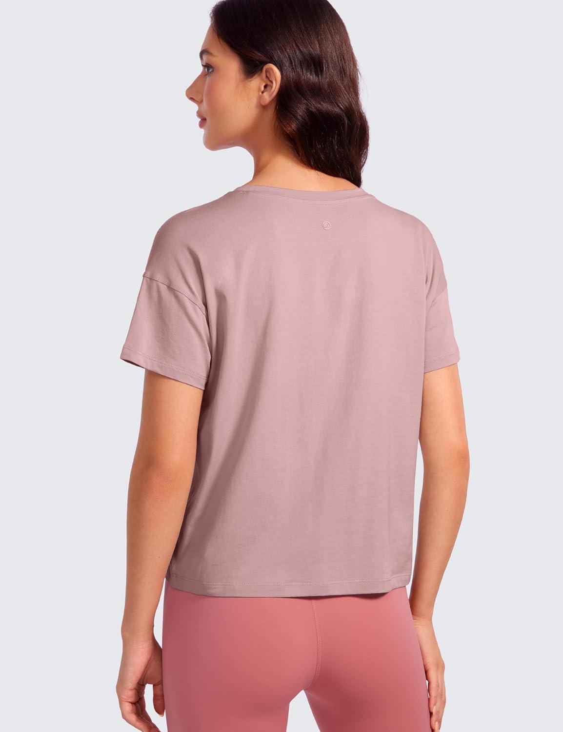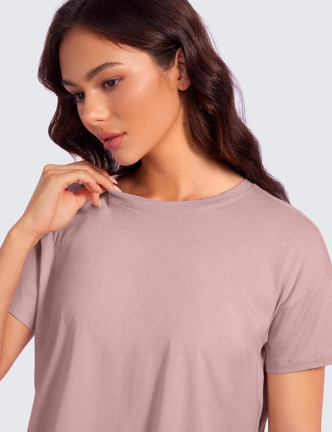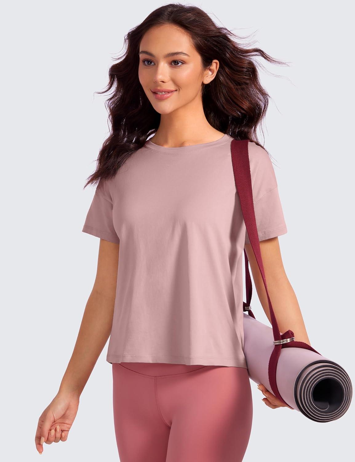 CRZ YOGA Pima Cotton Relaxed T-Shirts for Women – Workout Athletic Gym Casual Short Sleeve Shirts Basic Crewneck Hip Tops(Twilight Rose Pink)