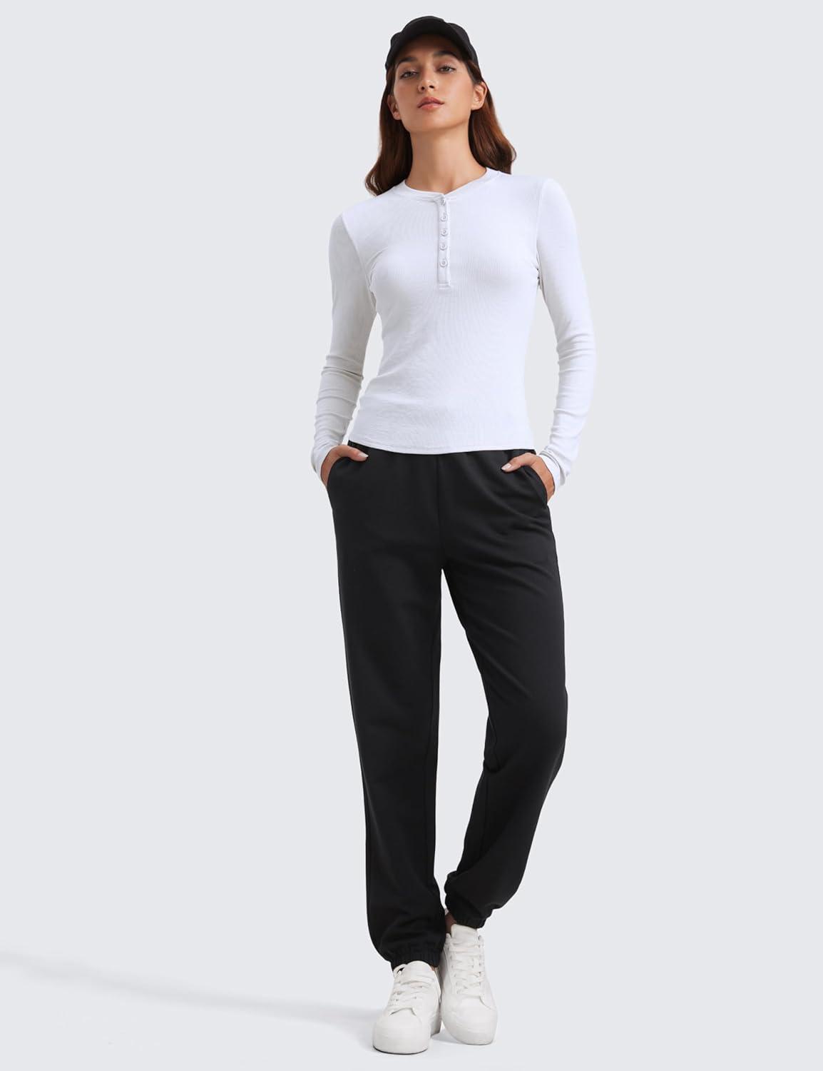 CRZ YOGA Ribbed Modal Henley Shirts for Women – Comfort Casual Knit Long Sleeve Tops Soft Stretchy Basic Fitted Layering(Black)