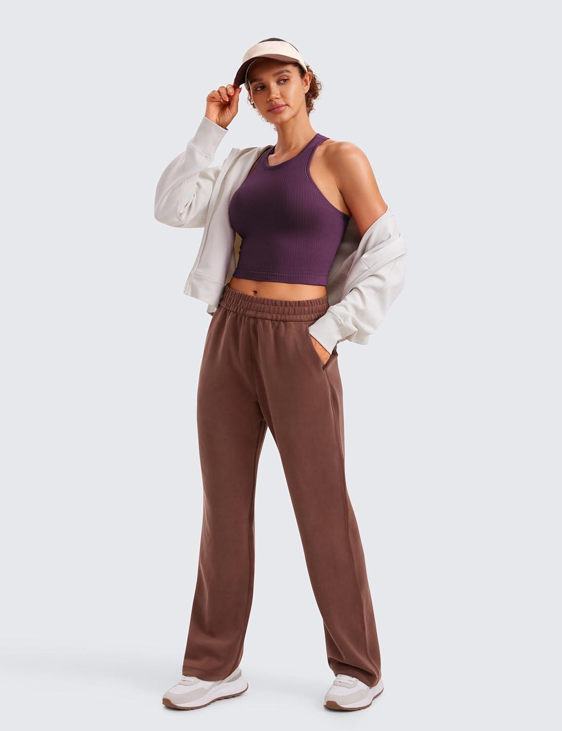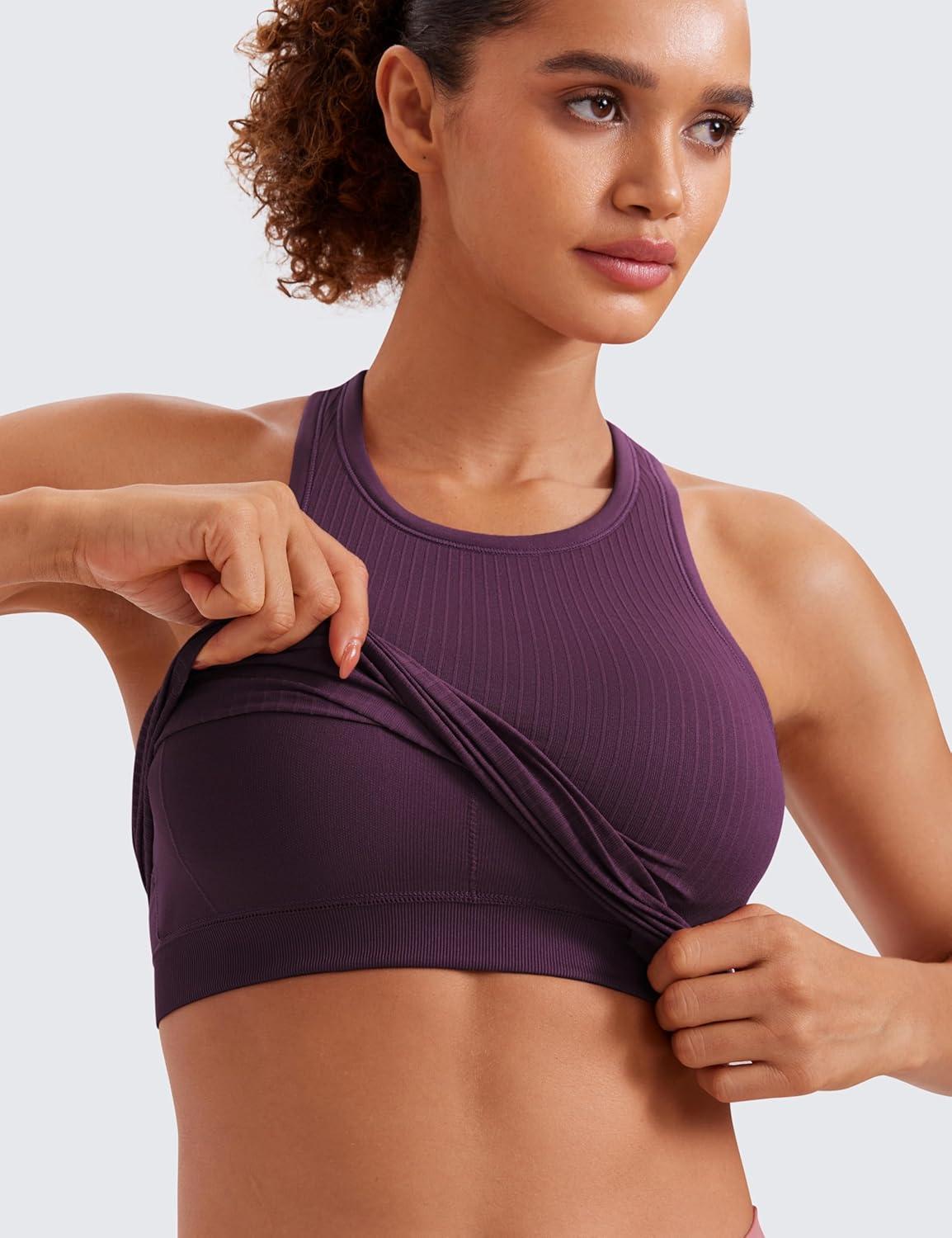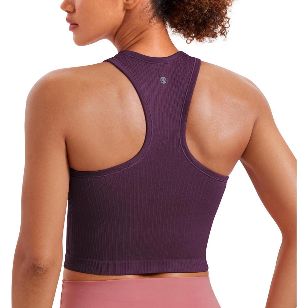 imageCRZ YOGA Seamless Ribbed High Neck Crop Tank Tops for Women  Longline Racerback Padded Sports BrasDeep Purple