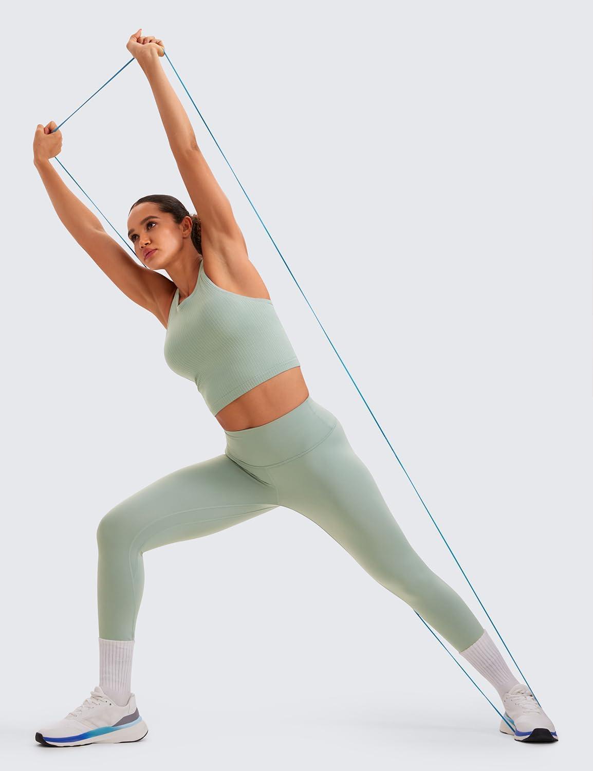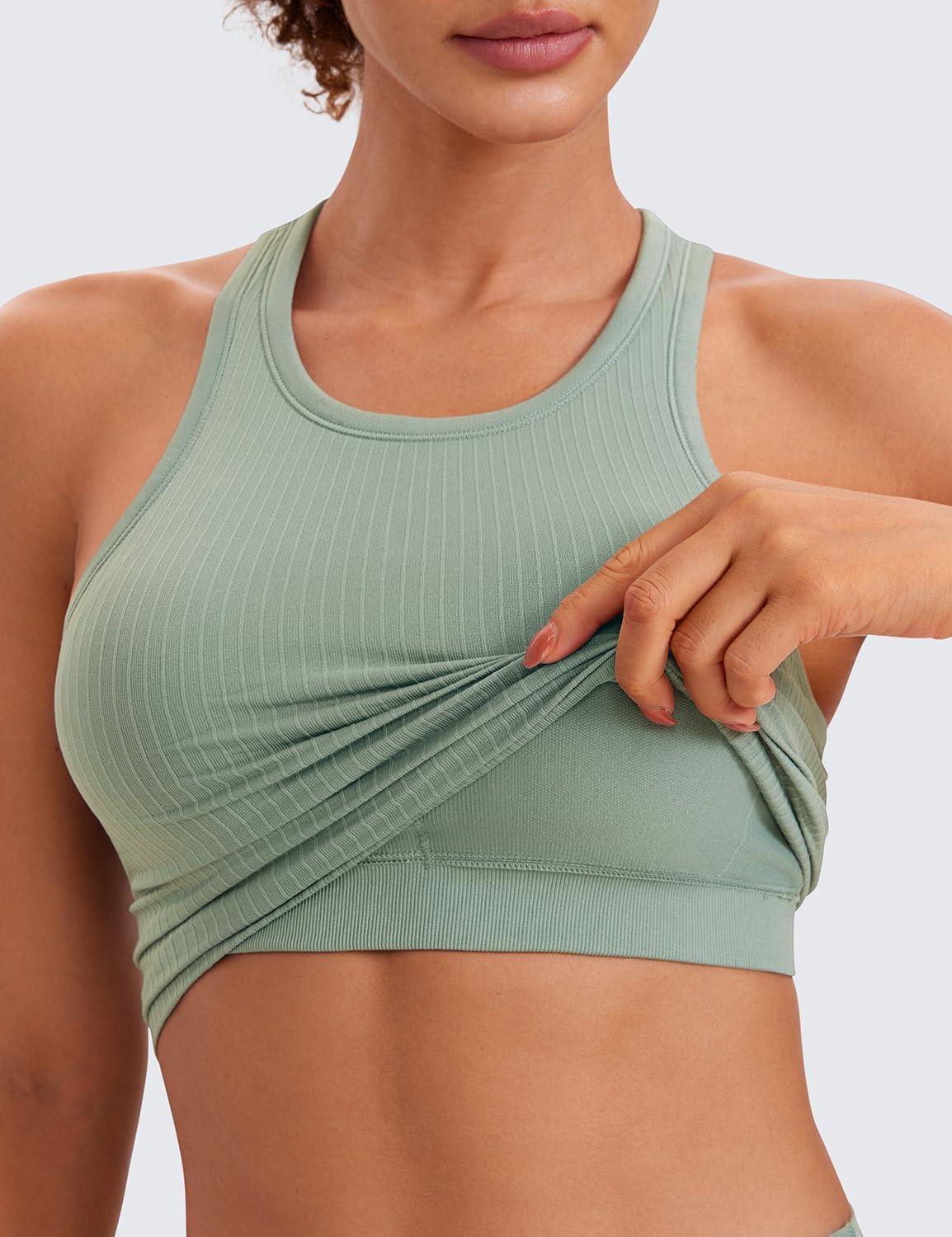 CRZ YOGA Seamless Ribbed High Neck Crop Tank Tops for Women – Longline Racerback Padded Sports Bras(Green Palm Court)