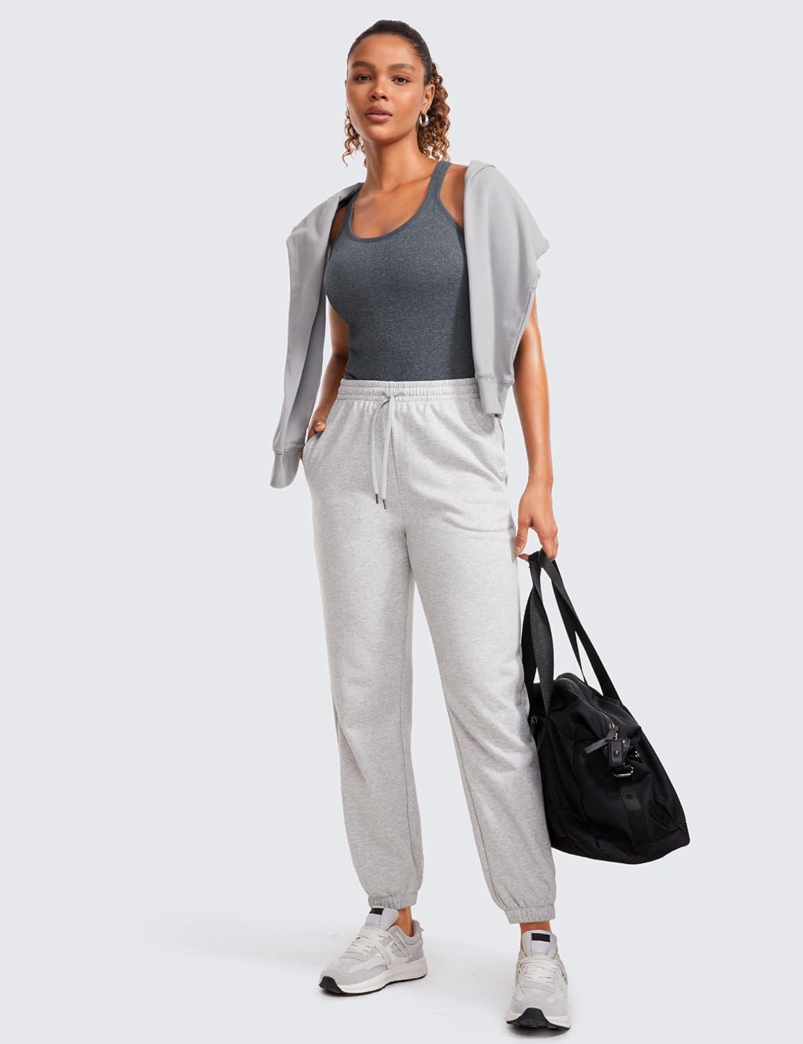 CRZ YOGA Seamless Ribbed Scoop Neck Tank Top for Women – Workout Racerback Padded Athletic Camisole with Built in Bra(Light Gray 7)
