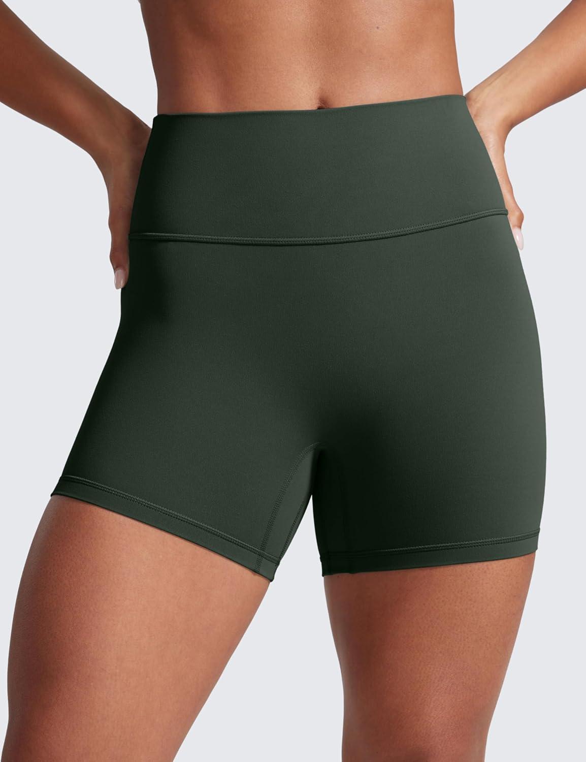 CRZ YOGA Secretsculpt Butterlift Biker Shorts 4″ – No Front Seam High Waisted Womens Workout Gym Booty Scrunch Butt(Crater Green)