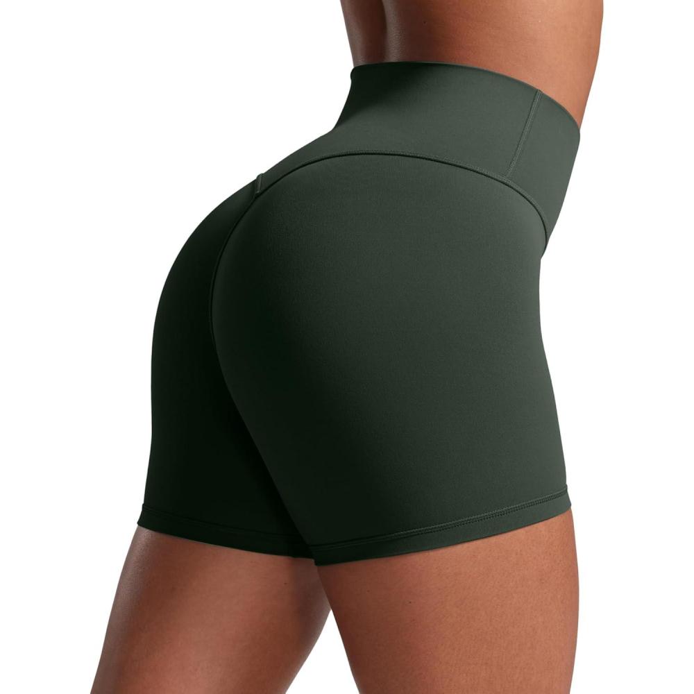 CRZ YOGA Secretsculpt Butterlift Biker Shorts 4″ – No Front Seam High Waisted Womens Workout Gym Booty Scrunch Butt(Legend Green)