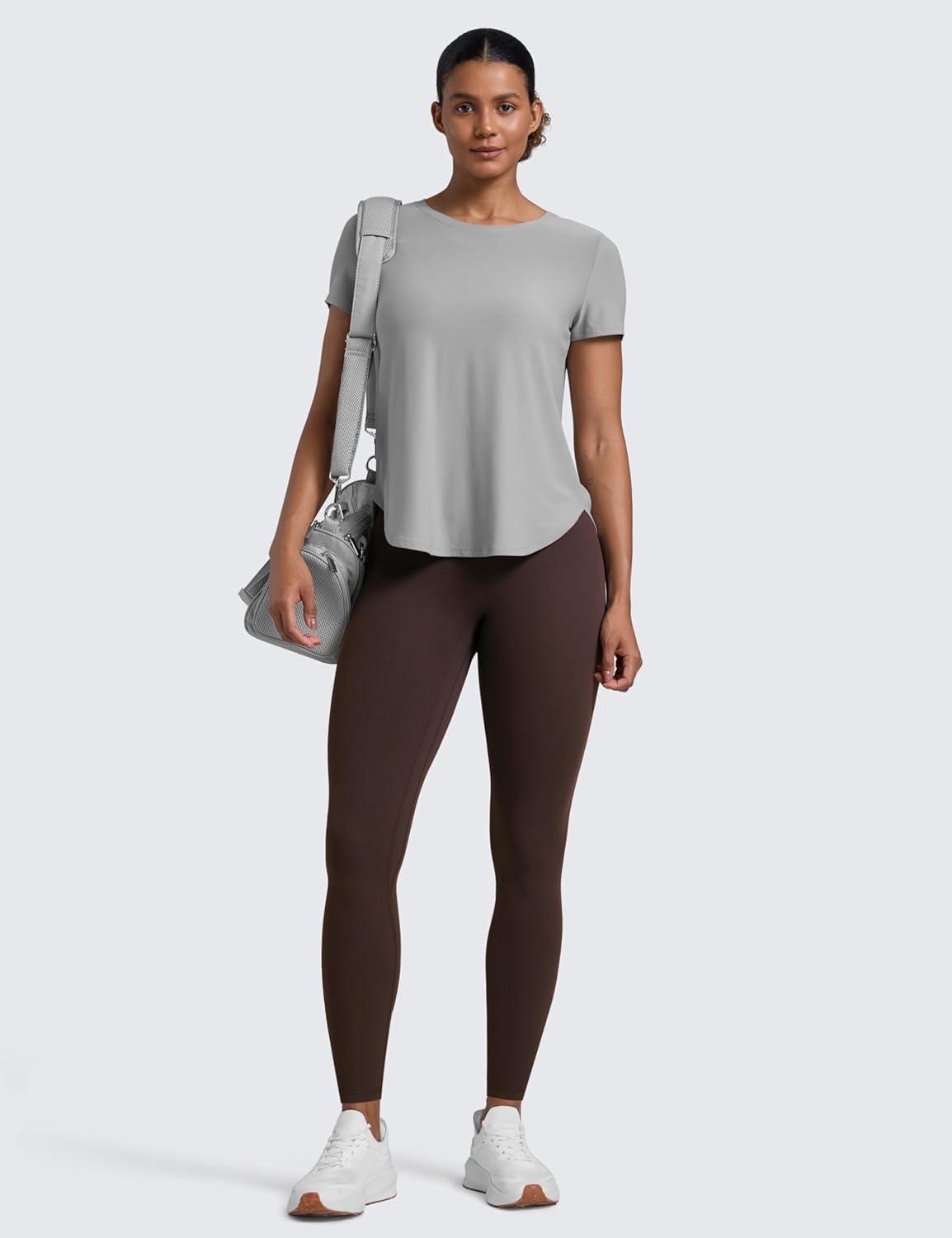 CRZ YOGA Secretsculpt Butterlift Workout Leggings 28″ – No Front Seam High Waisted Womens Yoga Pants Booty Scrunch Butt(Hot Fudge Brown)