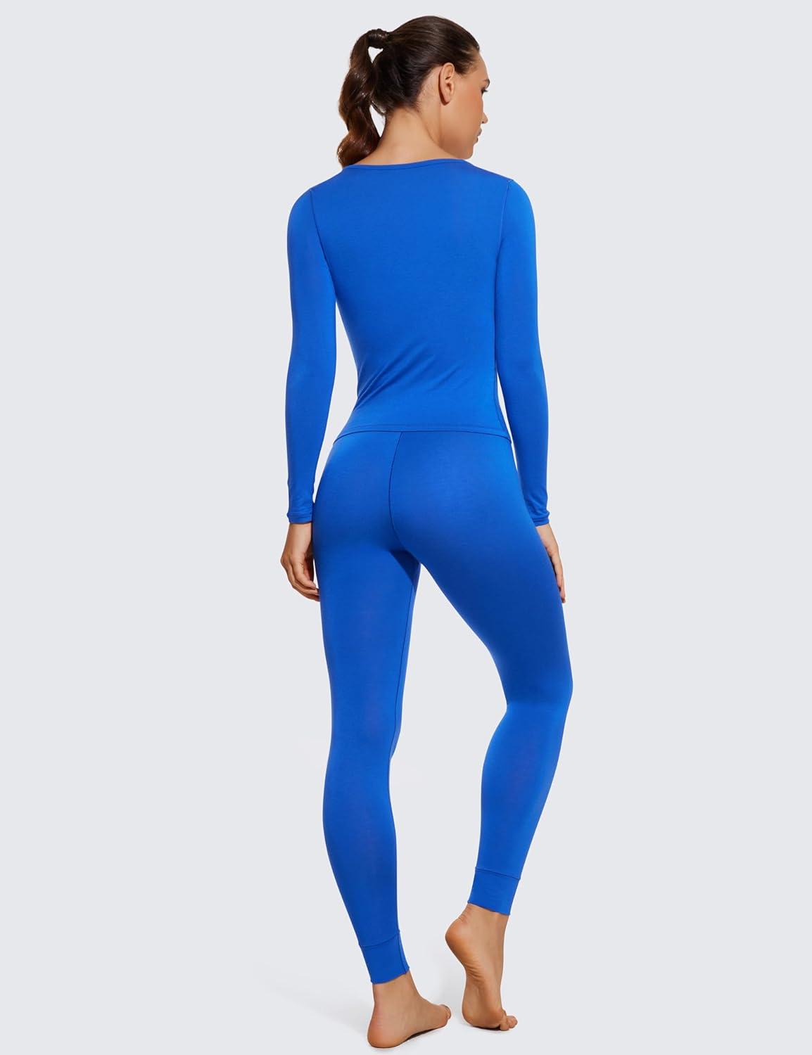 CRZ YOGA Soft Thermal Underwear Sets for Women Lightweight Long Johns Base Layer Pajamas Warm Top Bottom(Sparkle Blue)