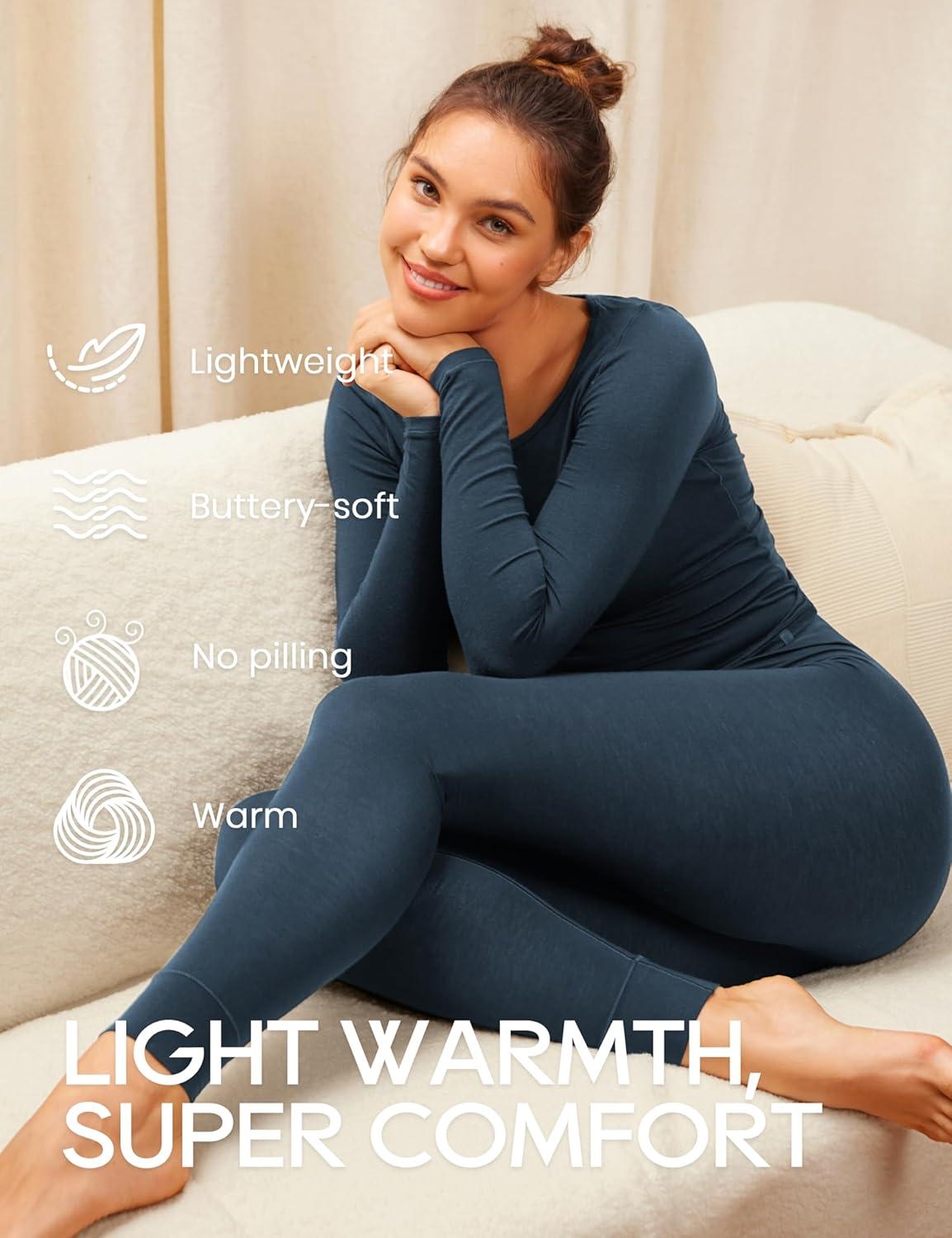 CRZ YOGA Soft Thermal Underwear Sets for Women Lightweight Long Johns Base Layer Pajamas Warm Top Bottom(Stelindigo)