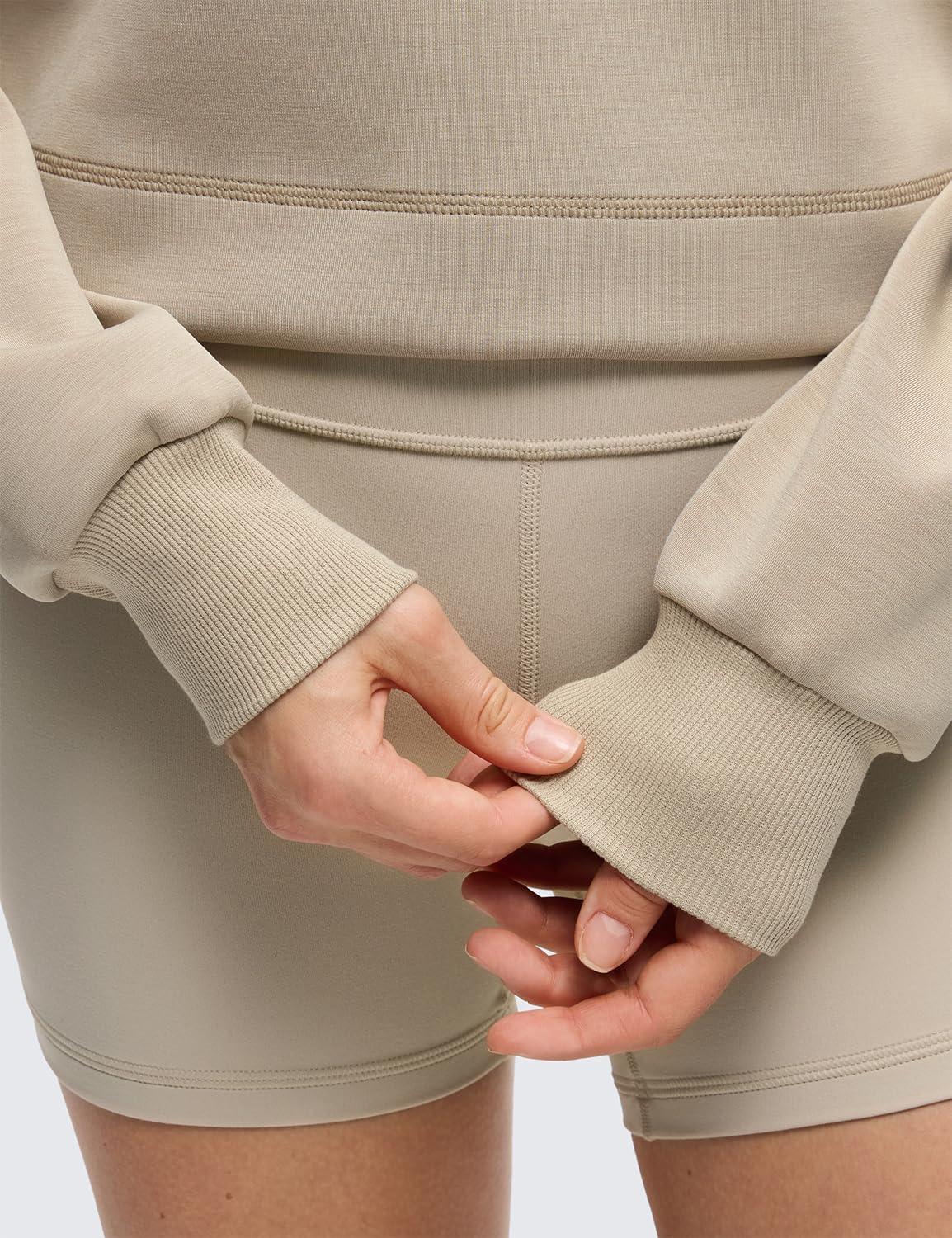 CRZ YOGA SoftAura Cropped Hoodies for Women – Long Sleeve Pullover Basic Workout Casual Hooded Sweatshirts(Oak)