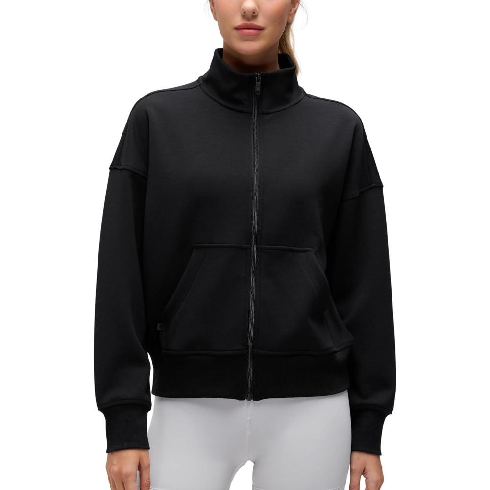 CRZ YOGA SoftAura Full Zip Sweatshirt for Women - Workout Casual Zipper Funnel Neck Sweat Shirts Jackets with Pockets(Black)