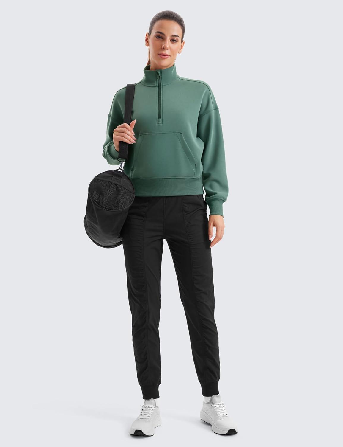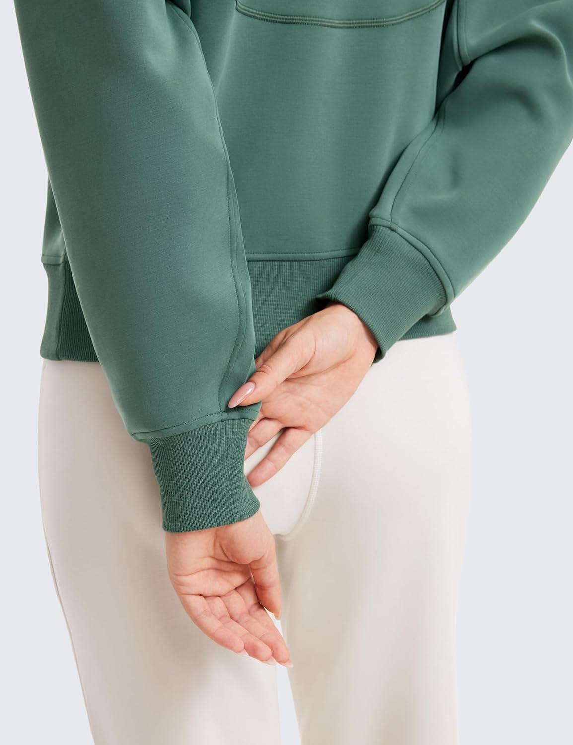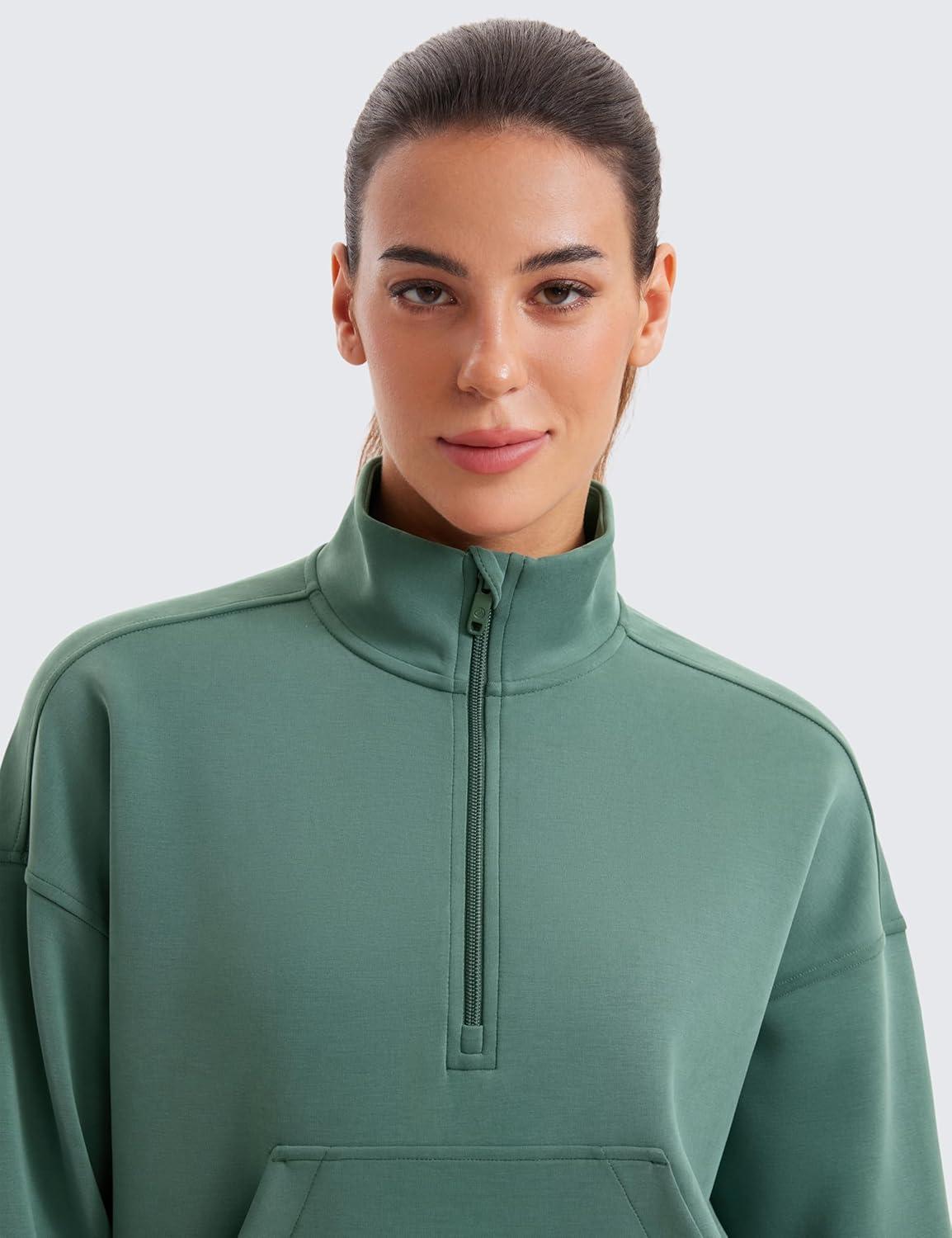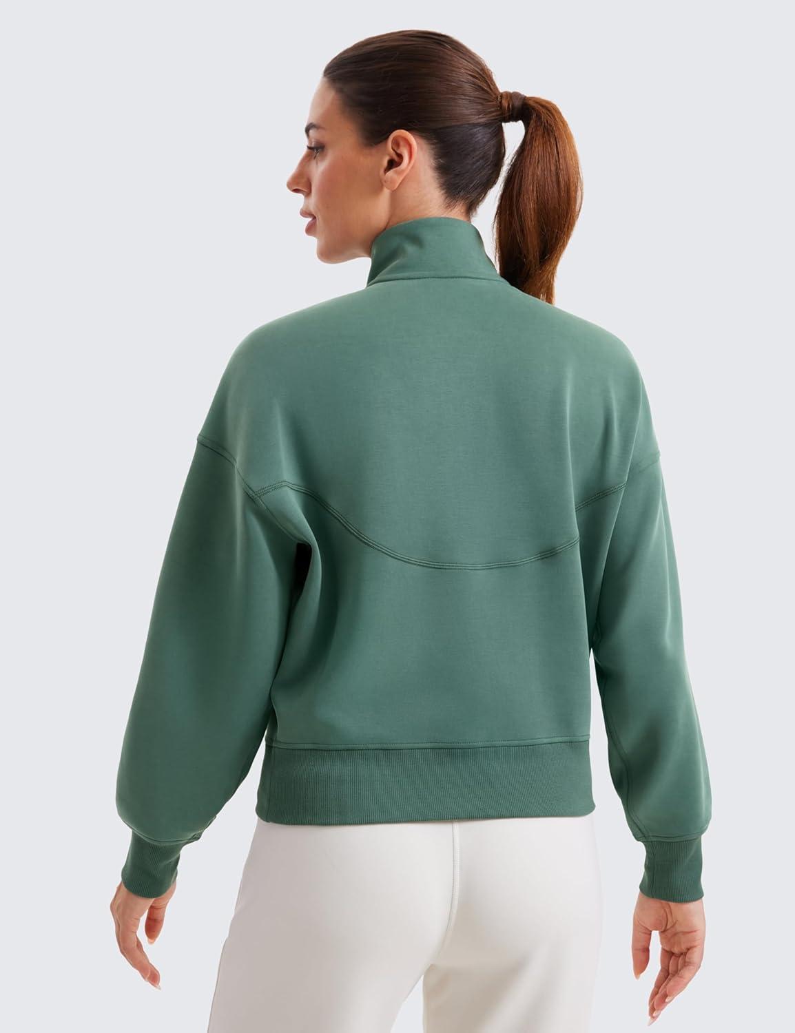CRZ YOGA SoftAura Half Zip Sweatshirt for Women – Pullover Workout Casual Funnel Neck Sweat Shirts with Pocket(Dark Forest Green)