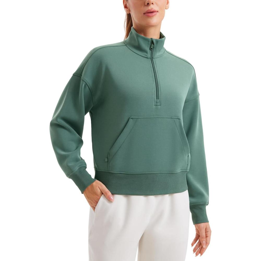 Be the first to review “CRZ YOGA SoftAura Half Zip Sweatshirt for Women – Pullover Workout Casual Funnel Neck Sweat Shirts with Pocket(Dark Forest Green)”