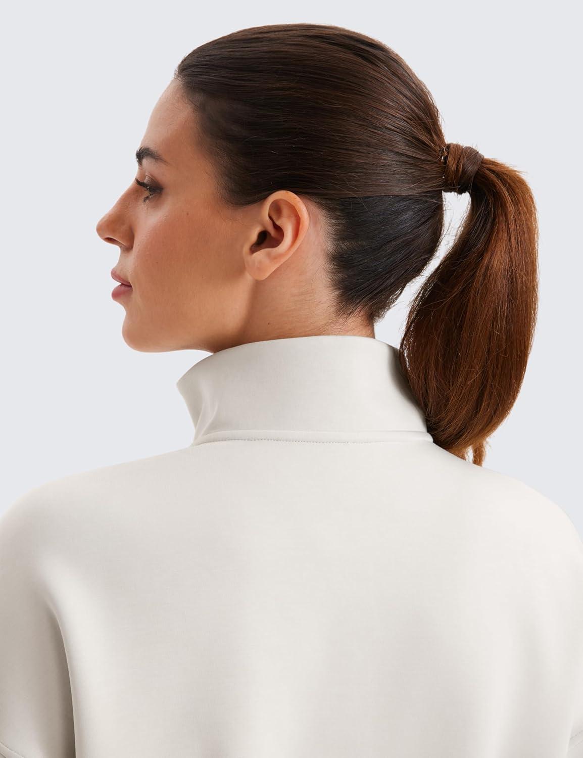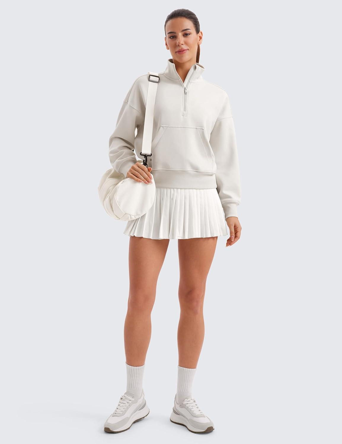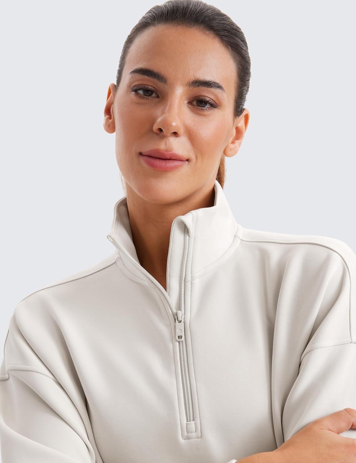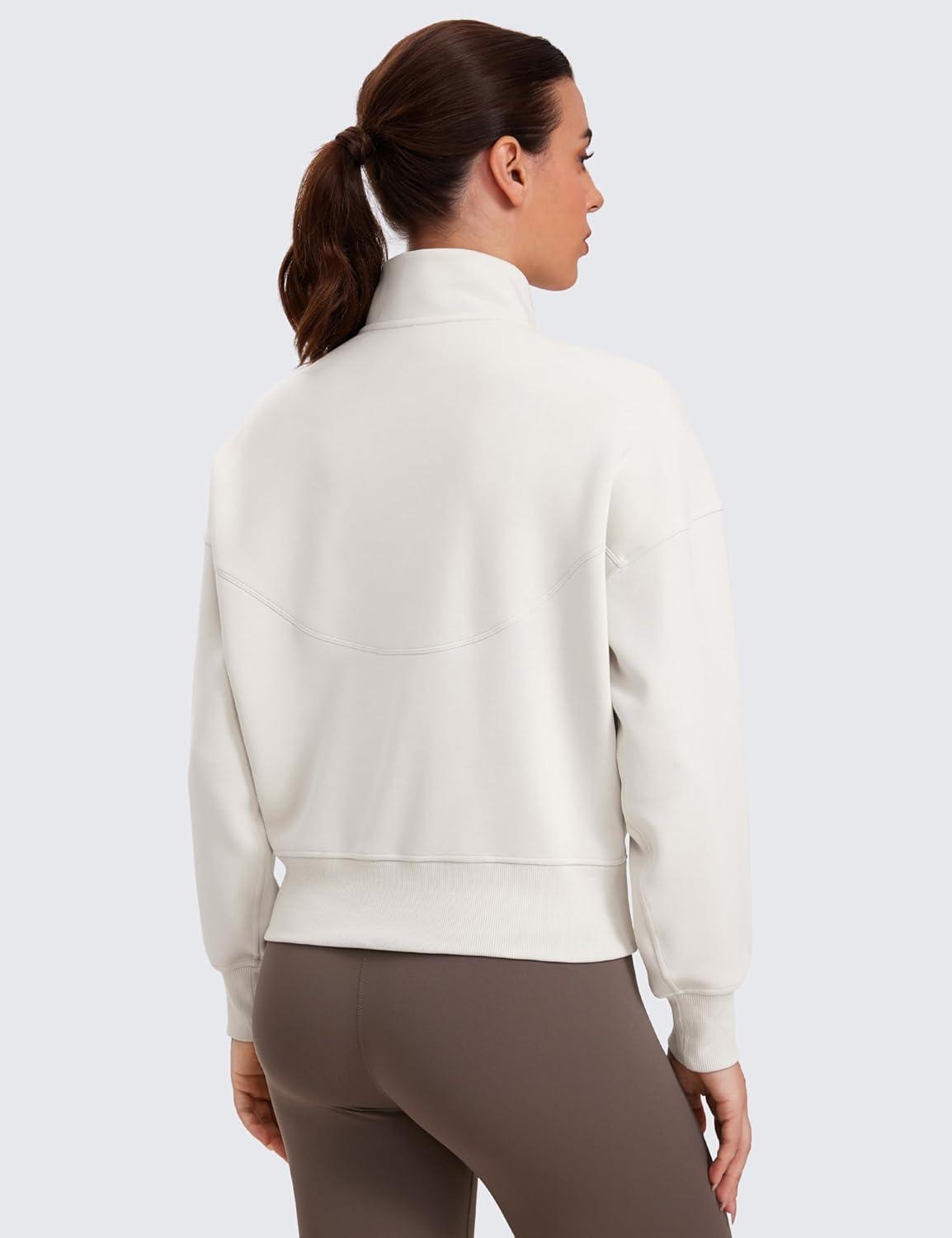 CRZ YOGA SoftAura Half Zip Sweatshirt for Women – Pullover Workout Casual Funnel Neck Sweat Shirts with Pocket(Milky White (Bone))