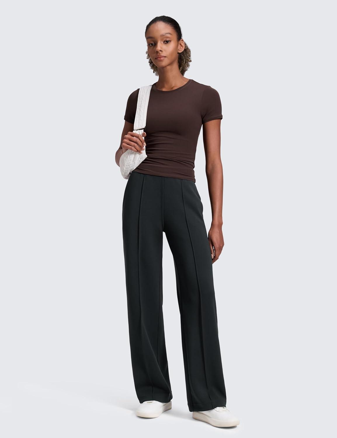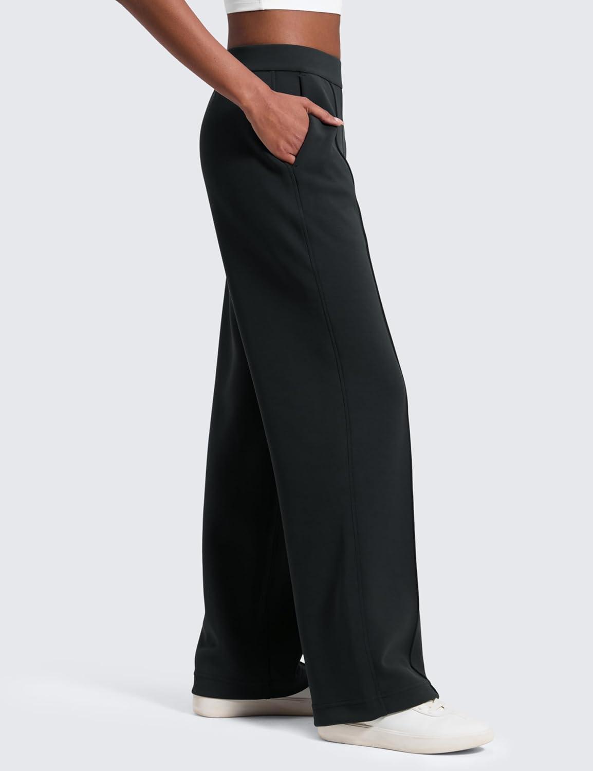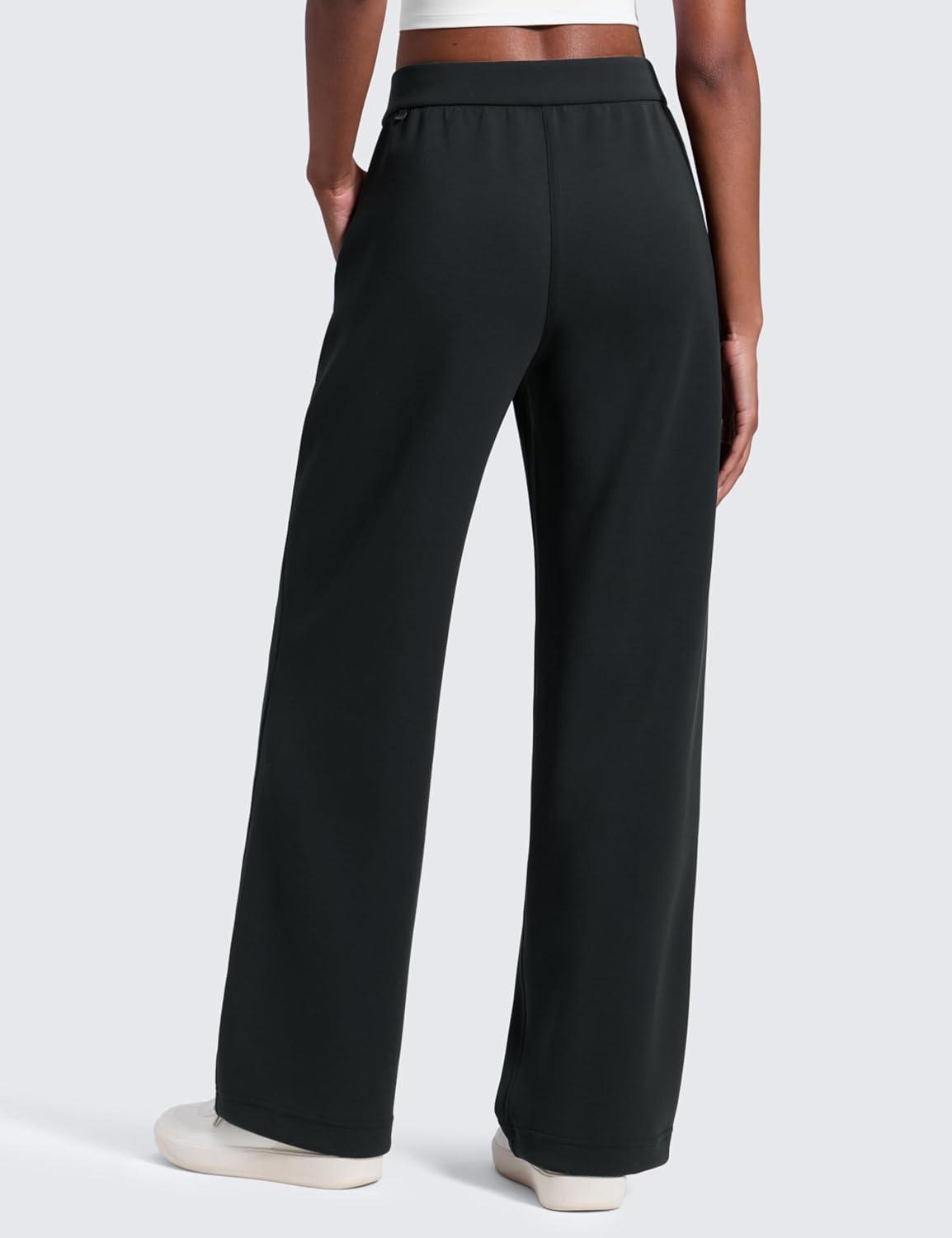 CRZ YOGA SoftAura Pintuck Straight Leg Sweatpants Women 30″ – Modal Casual Lounge Travel Pants with Pockets(Black)