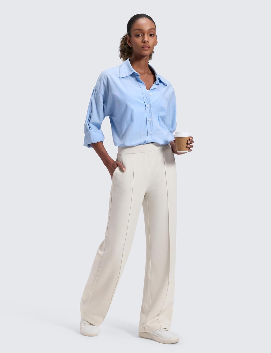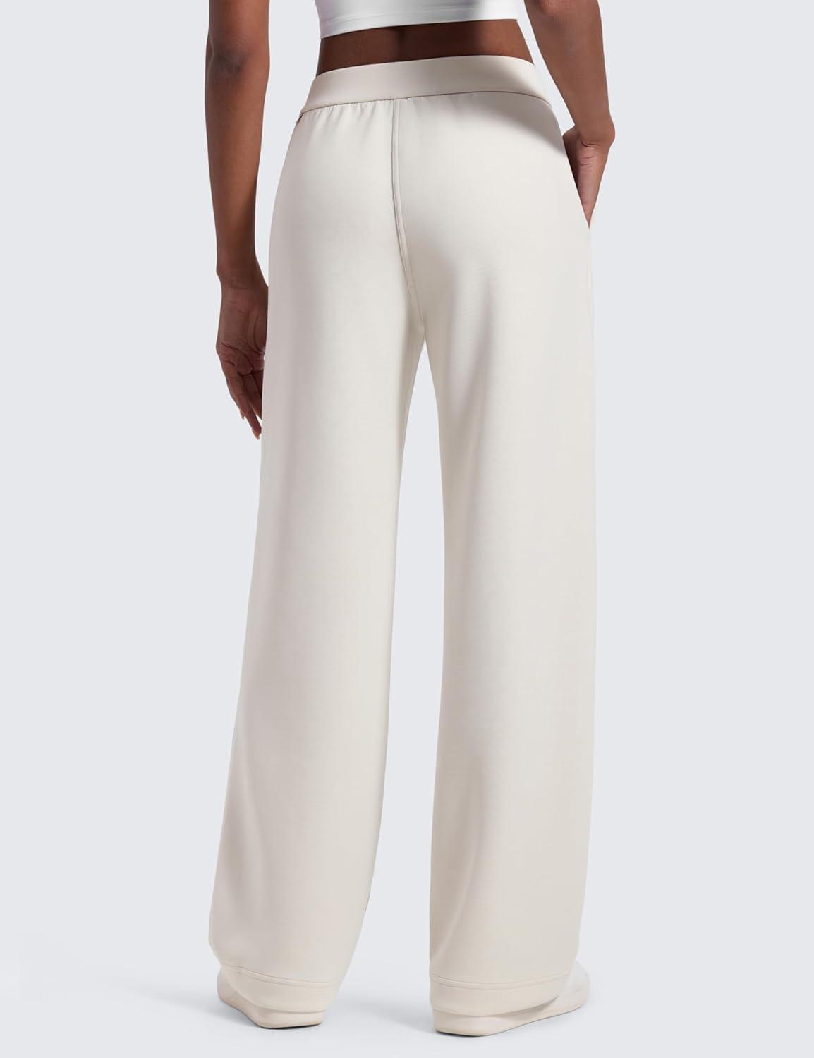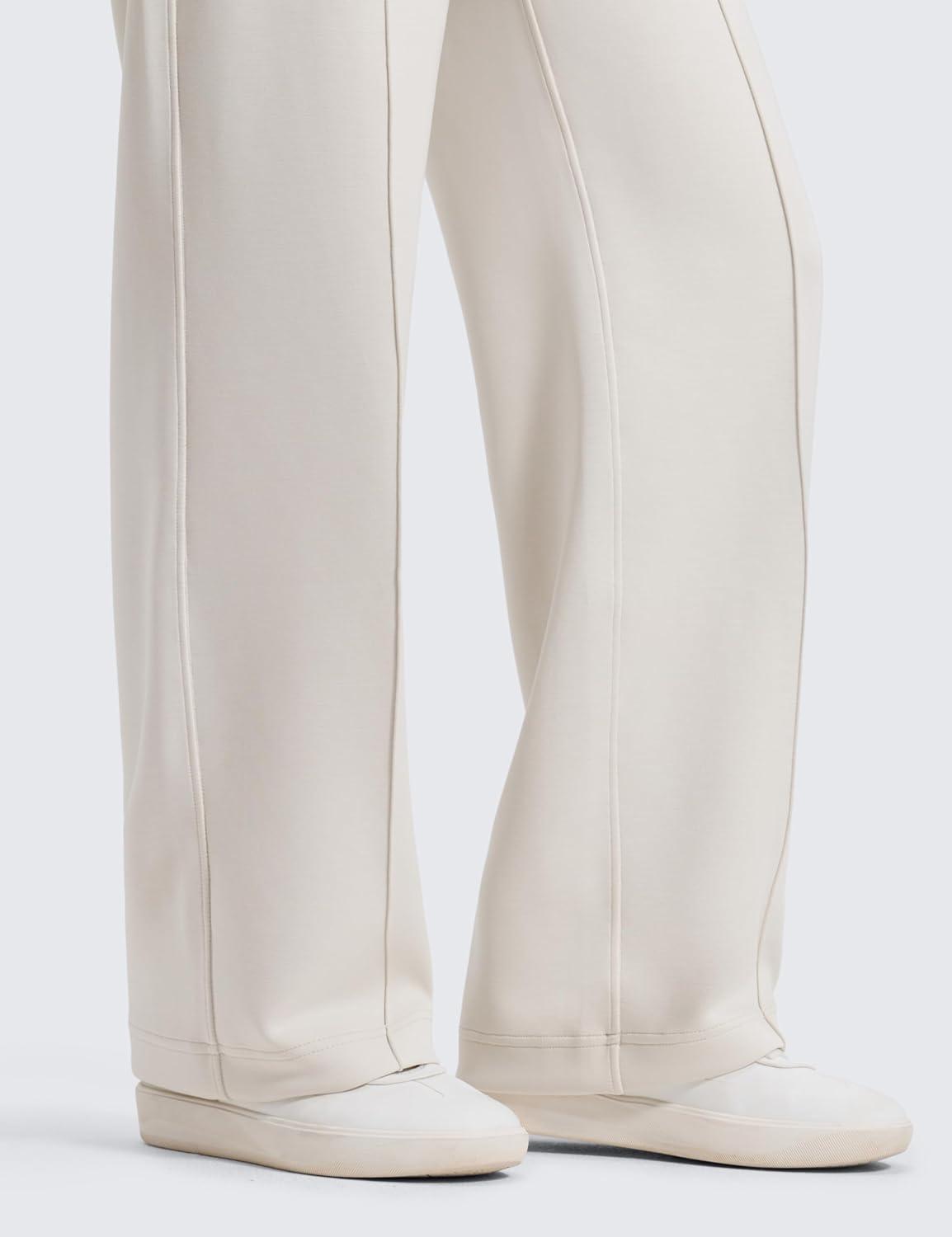 CRZ YOGA SoftAura Pintuck Straight Leg Sweatpants Women 30″ – Modal Casual Lounge Travel Pants with Pockets(Milky White)