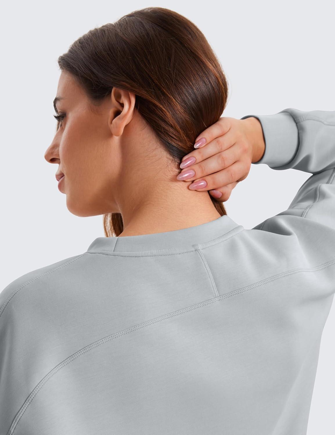 CRZ YOGA SoftAura Pullover Sweatshirt for Women – Crewneck Workout Casual Basic Fall Sweat Shirts(Rhino Grey)