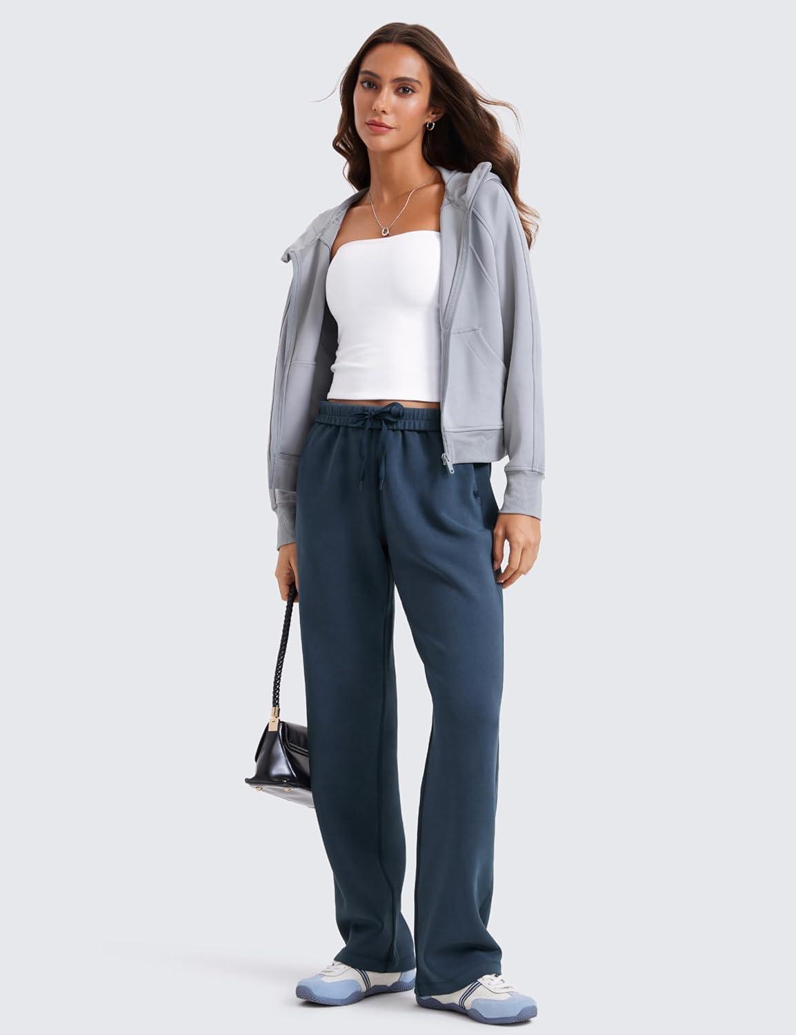 CRZ YOGA SoftAura Straight Leg Casual Sweatpants Women 28″/30″ – Modal Lounge Travel Pants with Pockets(Ink Blue)