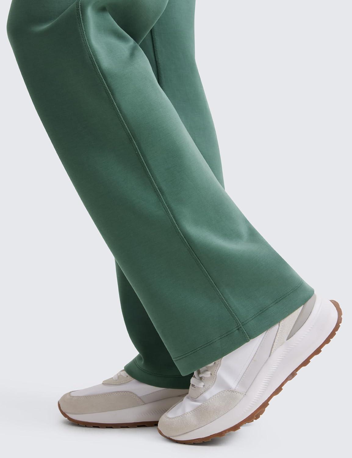 CRZ YOGA SoftAura Wide Leg Casual Sweatpants Women 29"/31" - Modal Lounge Travel Casual Pants with Pockets(Dark Forest Green)
